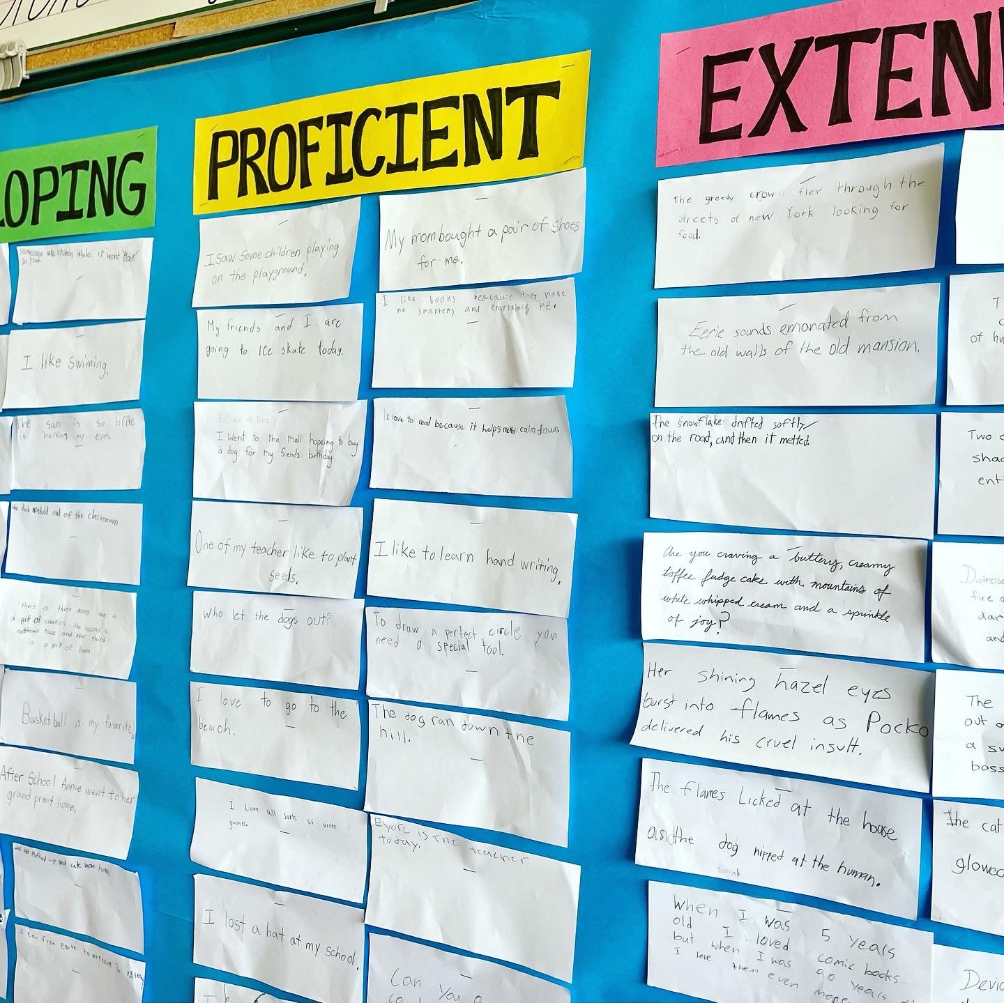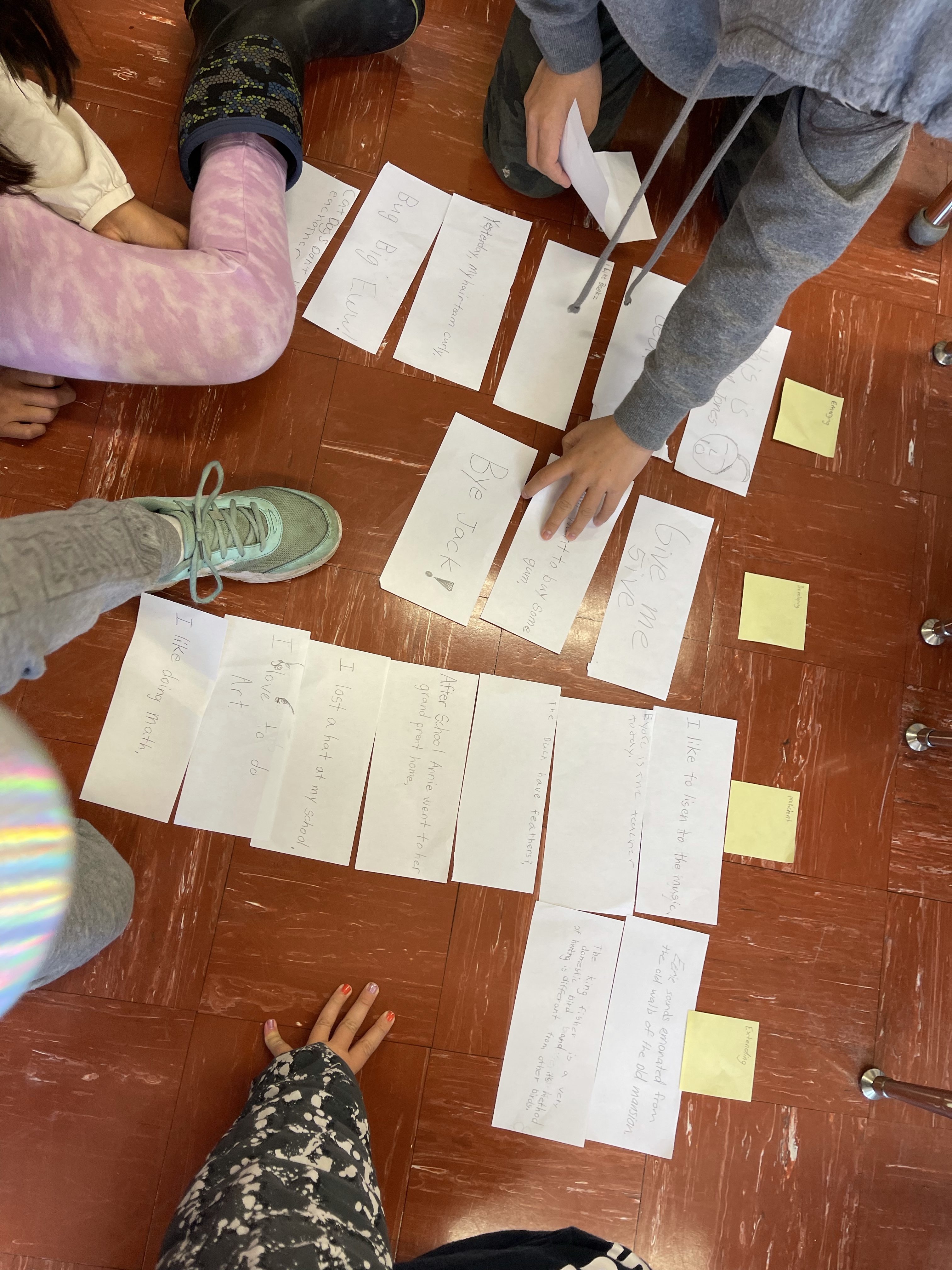 (1.) We worked together in groups to brainstorm fun sentences (intentionally writing a range of very simple to complex sentences).