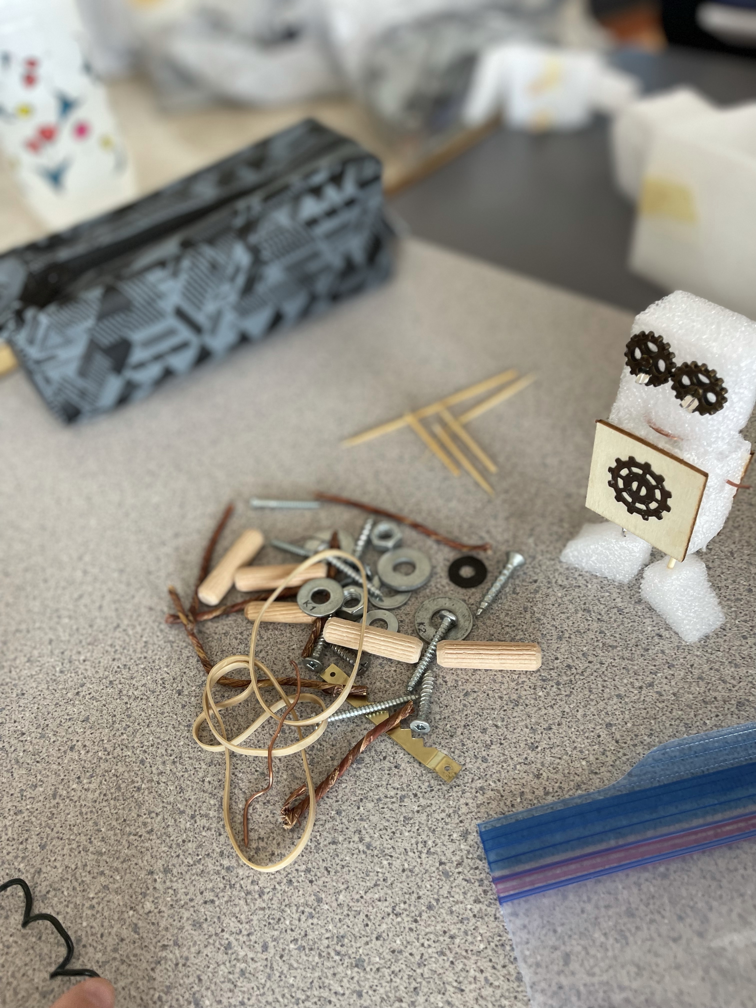 Safety Note: Our students are supervised closely in all hands-on creative work. Students must demonstrate they understand and can follow all safety guidelines at all times. I review all items brought into class before their use. Use of glue guns is optional and only under direct adult supervision. Use of tools such as pliers in conjunction with wire requires use of eye protection (safety glasses). Students are instructed that there is to be no building of dangerous items or weapons. Building of items such as a “marshmallow launcher” or working model of a trebuchet in specific protocol in our class (including that only soft items may be launched in our designated “launch zone” during supervised times). When it comes to safety, I’m a vigilant “Momma Bear” who seeks to ensure the safety of every student as if he/she were my own child. Please feel free to reach out if you have questions, concerns, or preferences to share.