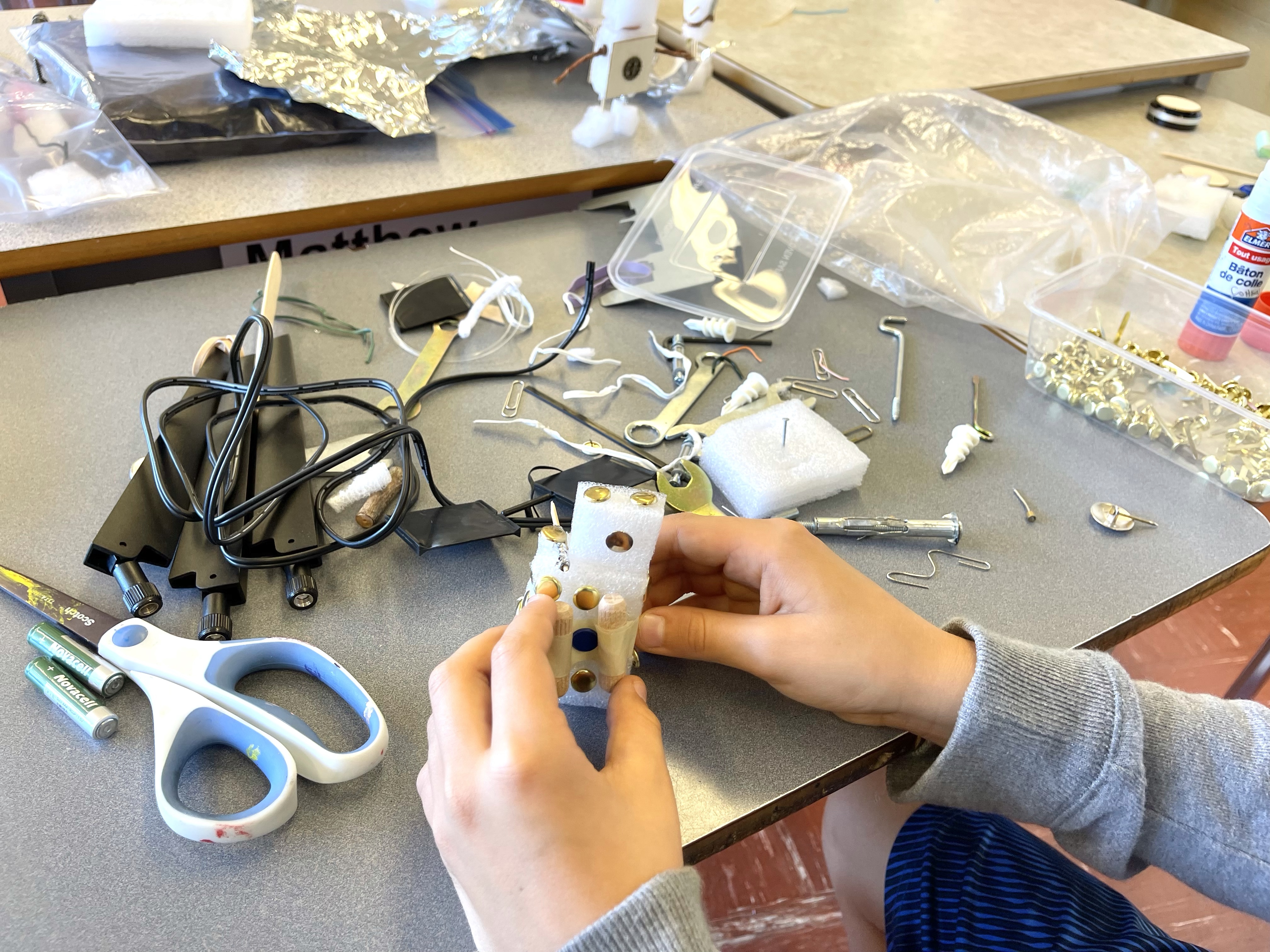 Following the design process outlined in the grade 4/5 curriculum for ADST (Applied Design, Skills, Technologies), students have already been applying their creativity, problem solving, communication and collaboration skills as they build model robots and tools with scavenged materials I have brought into class from my home. However, our supply is already running low.