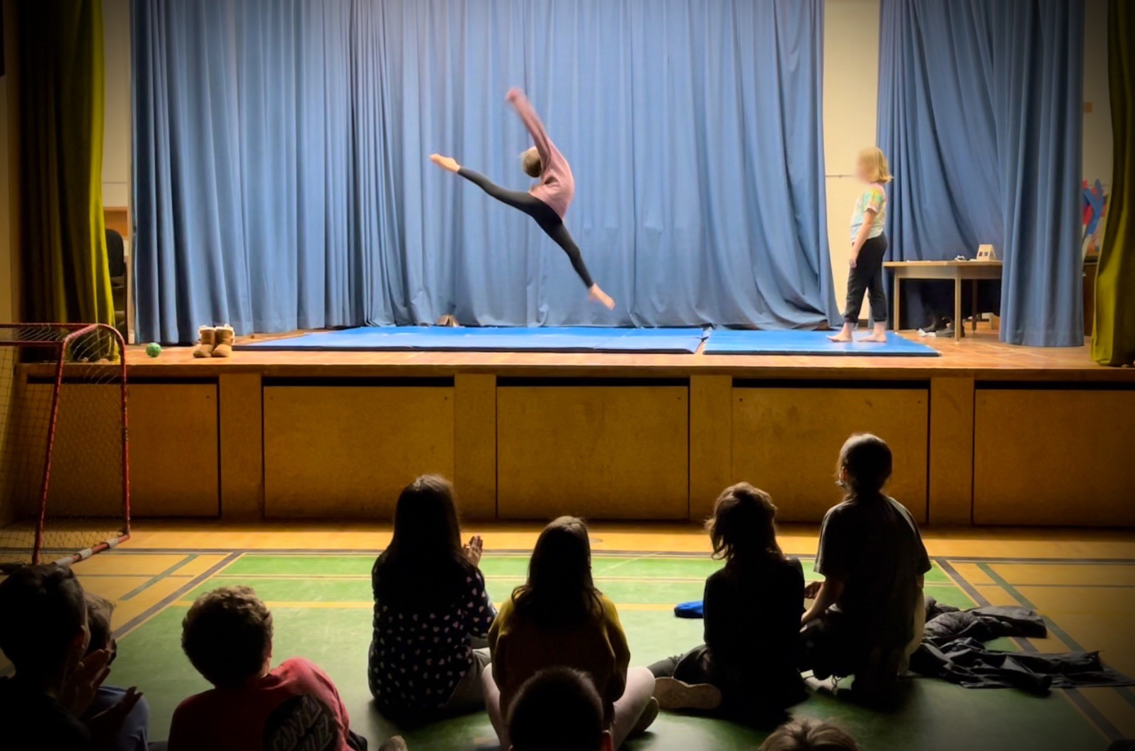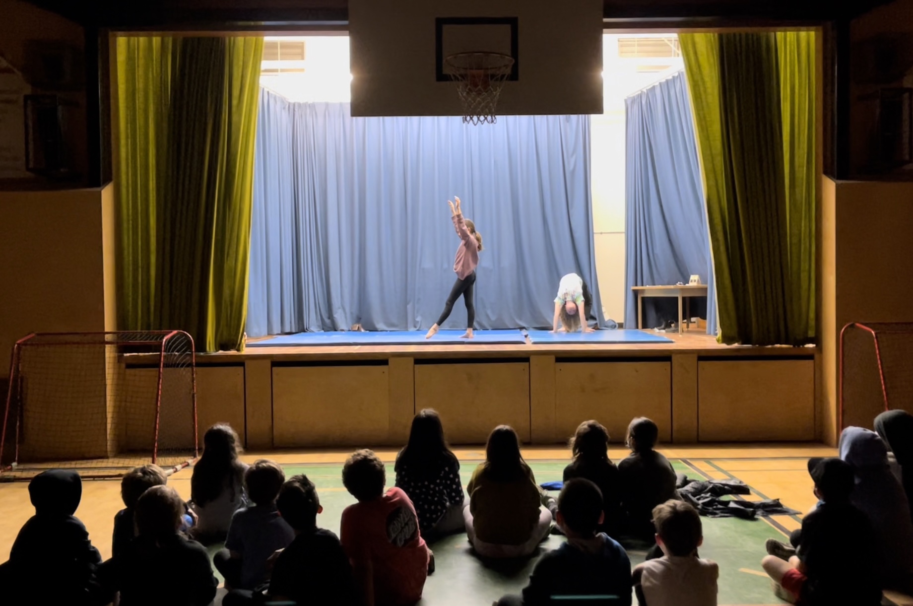 During PE today students had a fun mix of hockey, invented fantasy games, basketball trick practices, skipping and gymnastics presentations.
