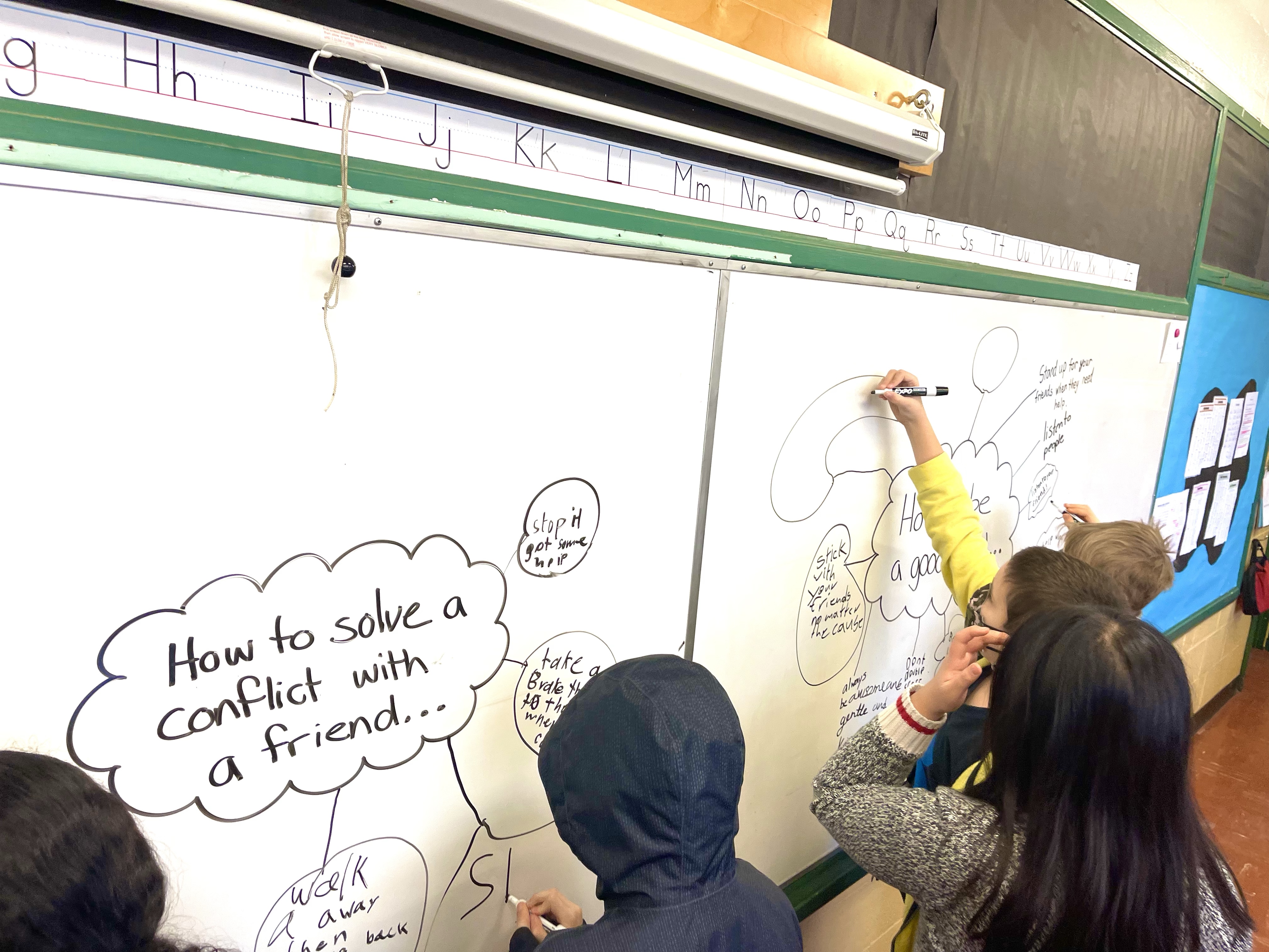 The students worked together to do their own mind map of their big ideas, and I modelled making a mind map as a summary of their dialogue points. I do this to honour their contributions in a visual form to make them easier to work with later and to show them the vast wisdom that can accrue from even just a short discussion.