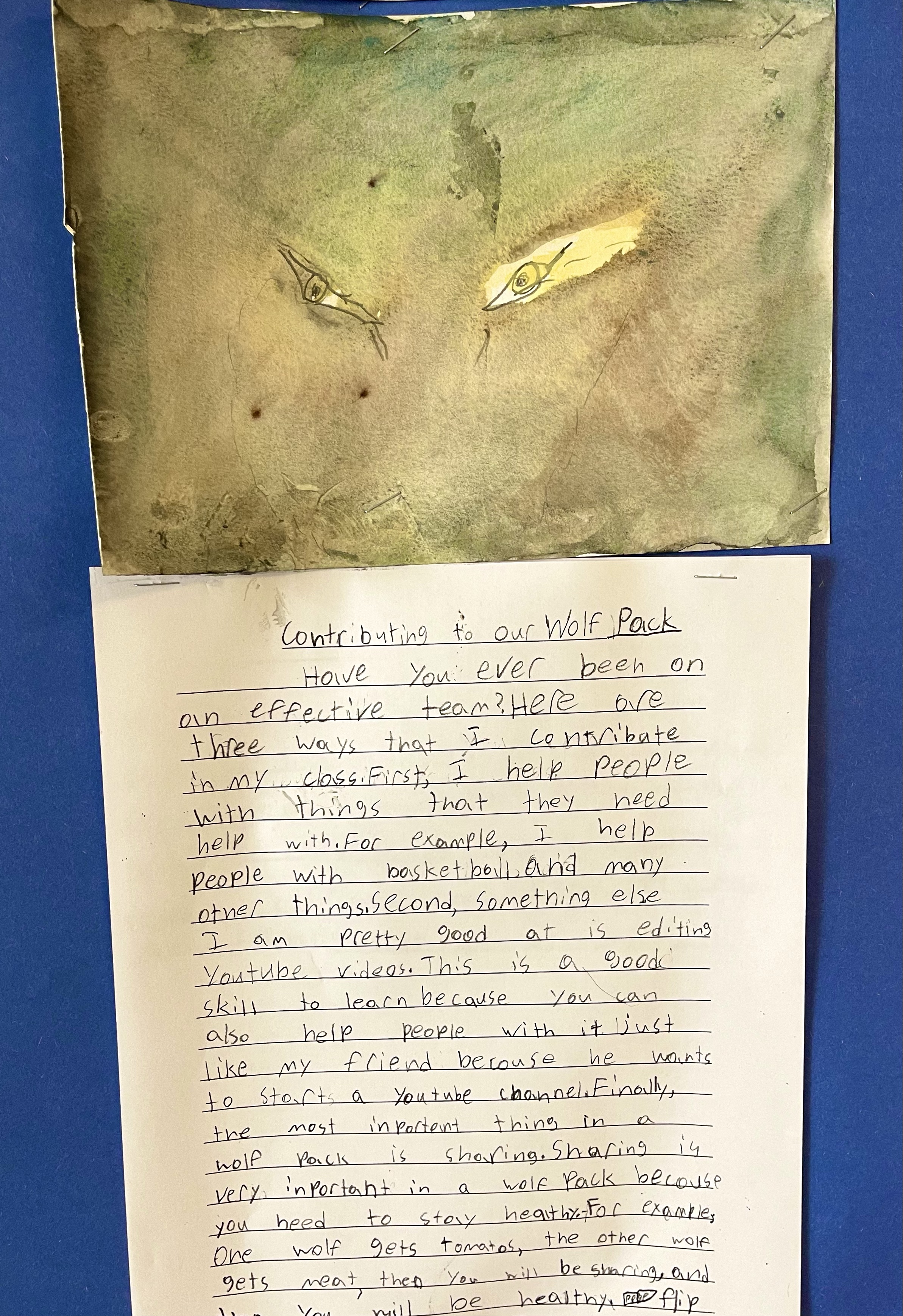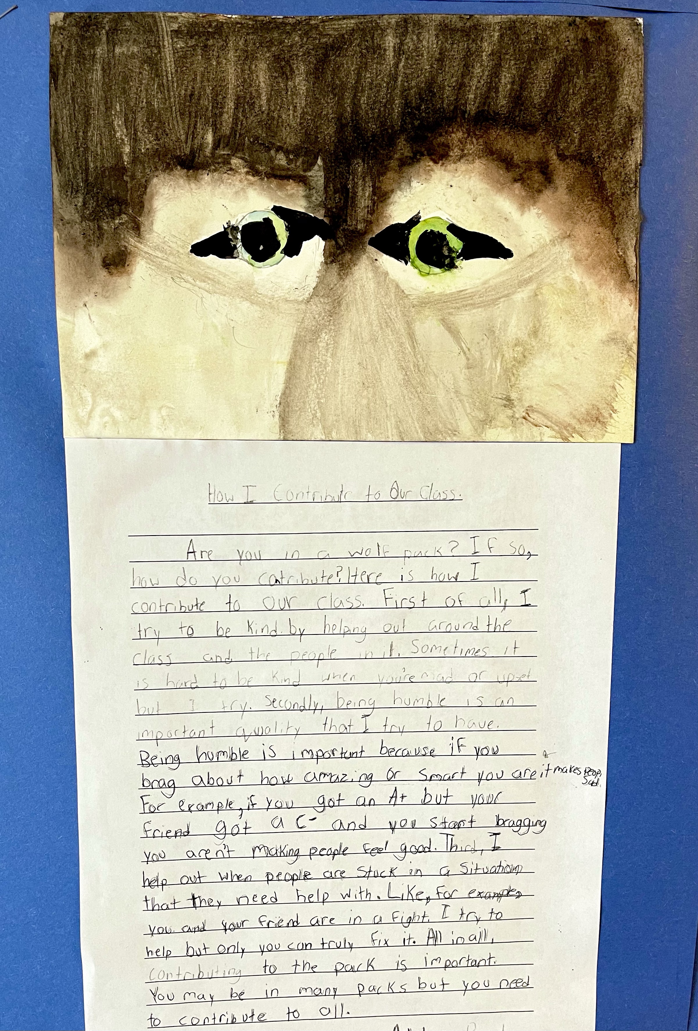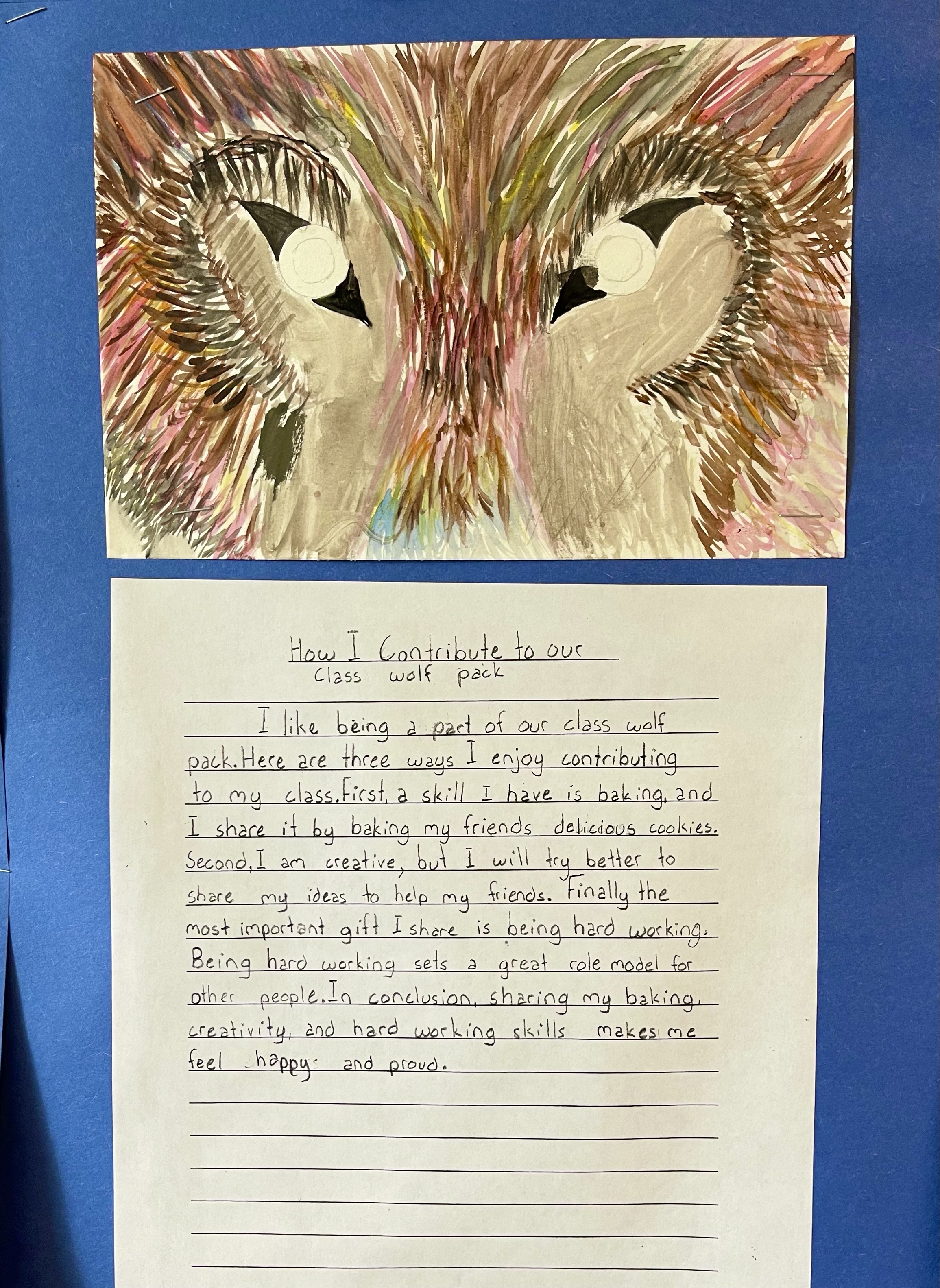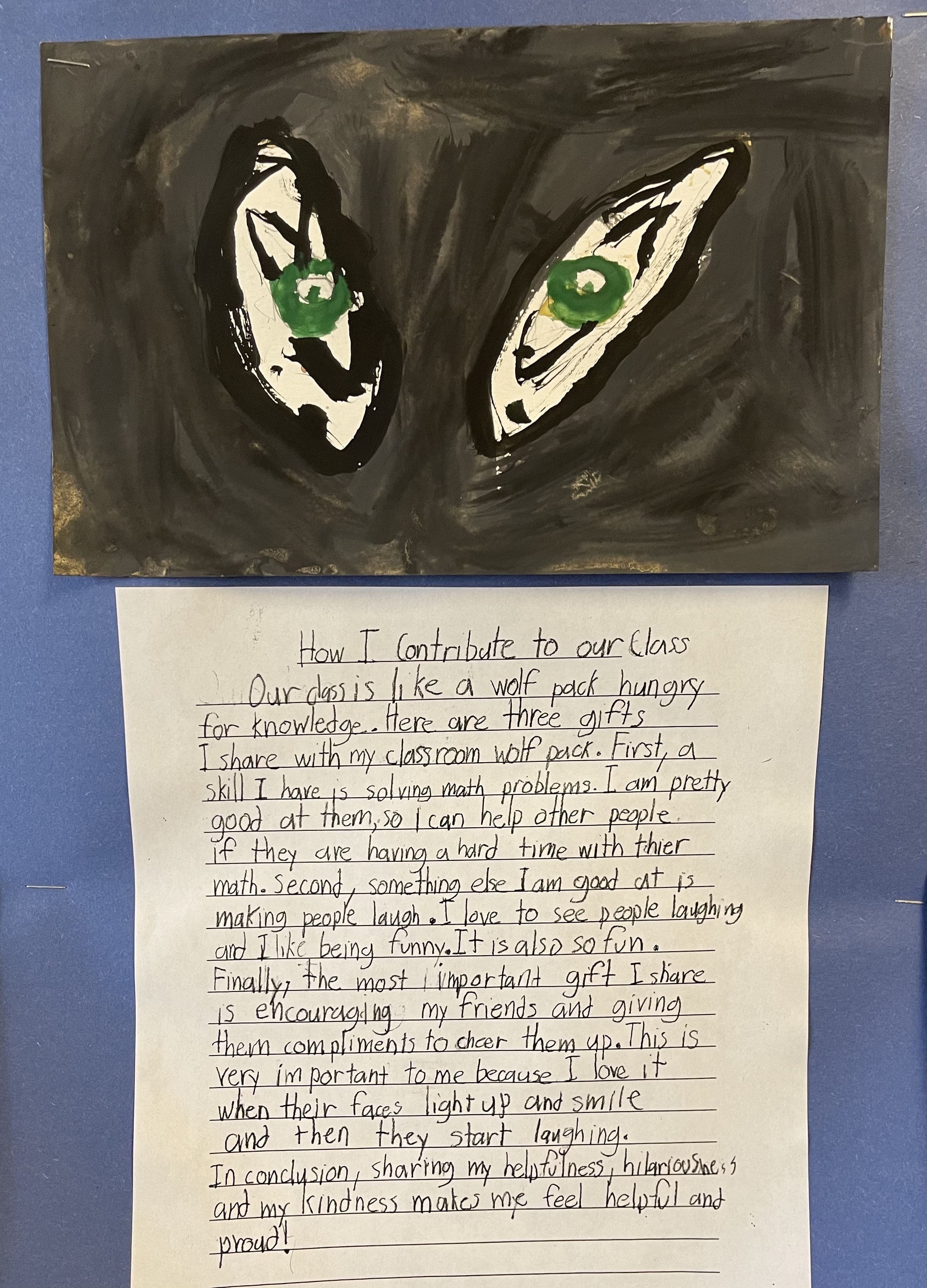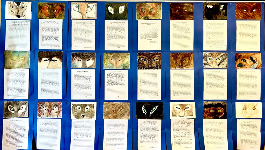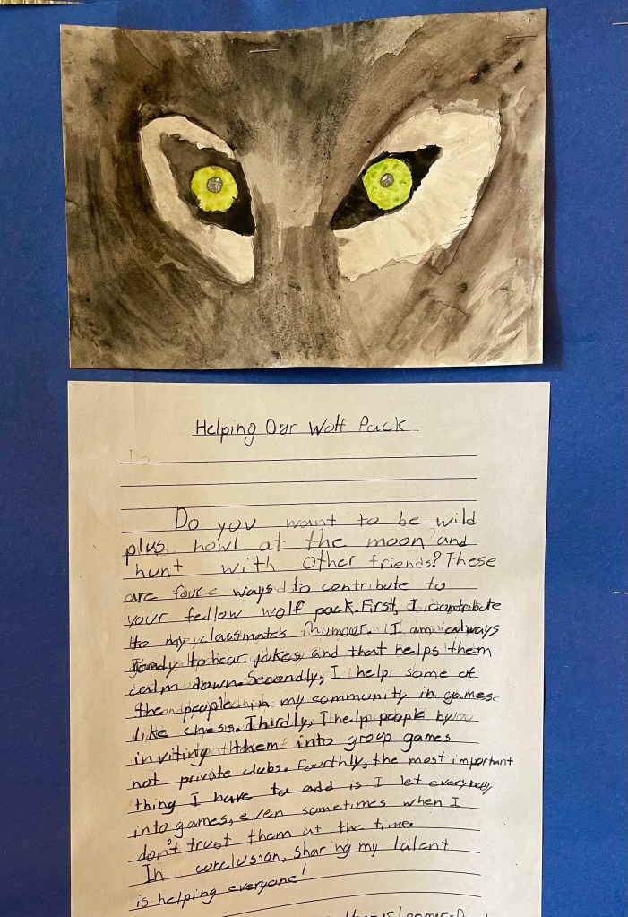 The result was a wall full of thoughtful, well-structured paragraphs about so many ways our wonderful students share their great skills, qualities, and ongoing care and effort to keep our class “wolf pack” strong. Wow! This was a fabulous effort by all! See below.
