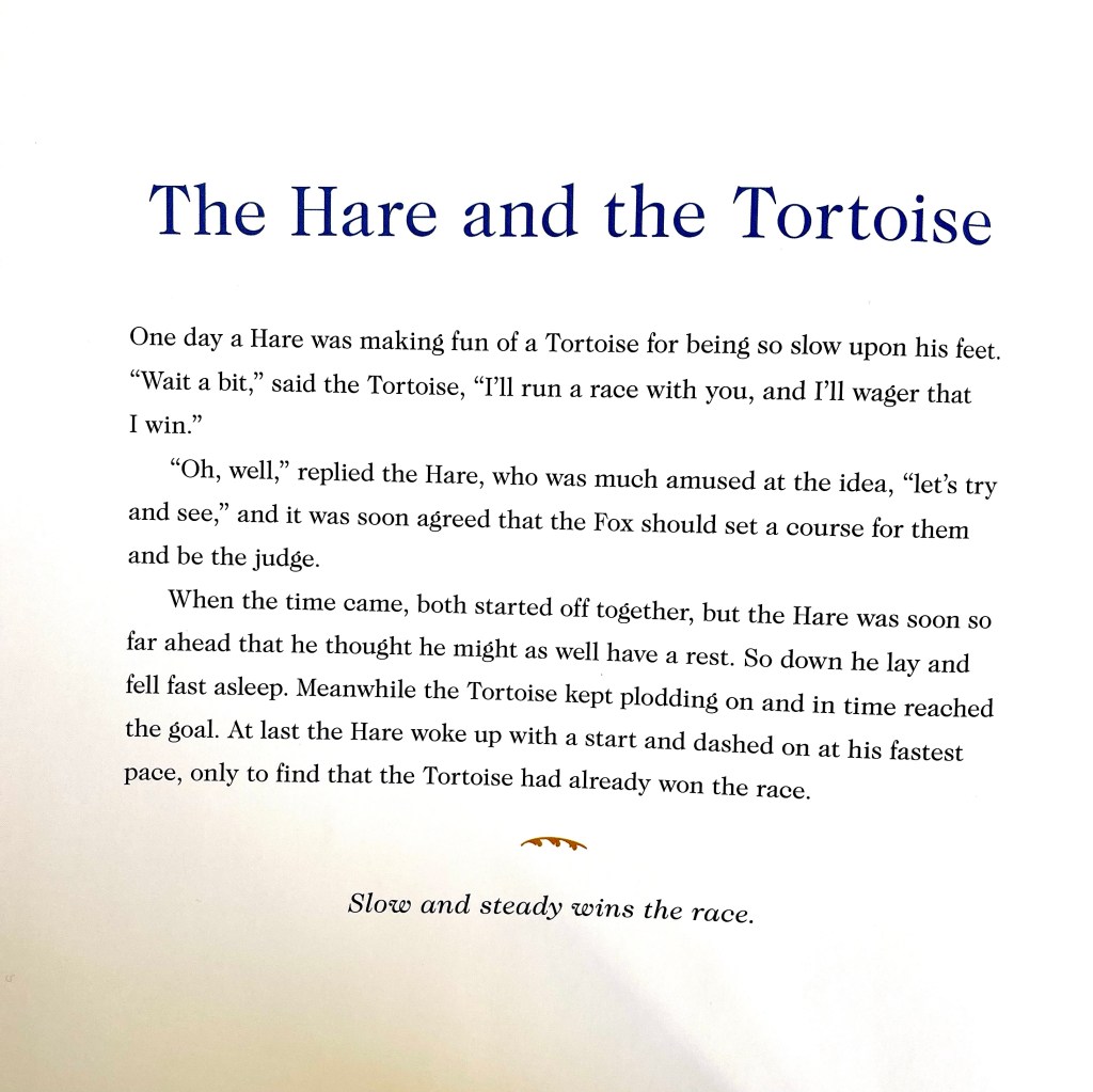 HOMEWORK: I have asked students to each retell the “Tortoise and the Hare” in their own fun way to someone in their family this weekend. They can change story elements or even alter characters (like maybe it’s about a slug and a cheetah); however, students should still follow the narrative arc: (1.) a slow character and a fast character compete in a race; (2.) the slow character beats the the fast one because the latter is prideful and thinks he’s so fast that he can afford to take nap during the race; and finally, (3.) the slow character wins because “slow and steady wins the race.”