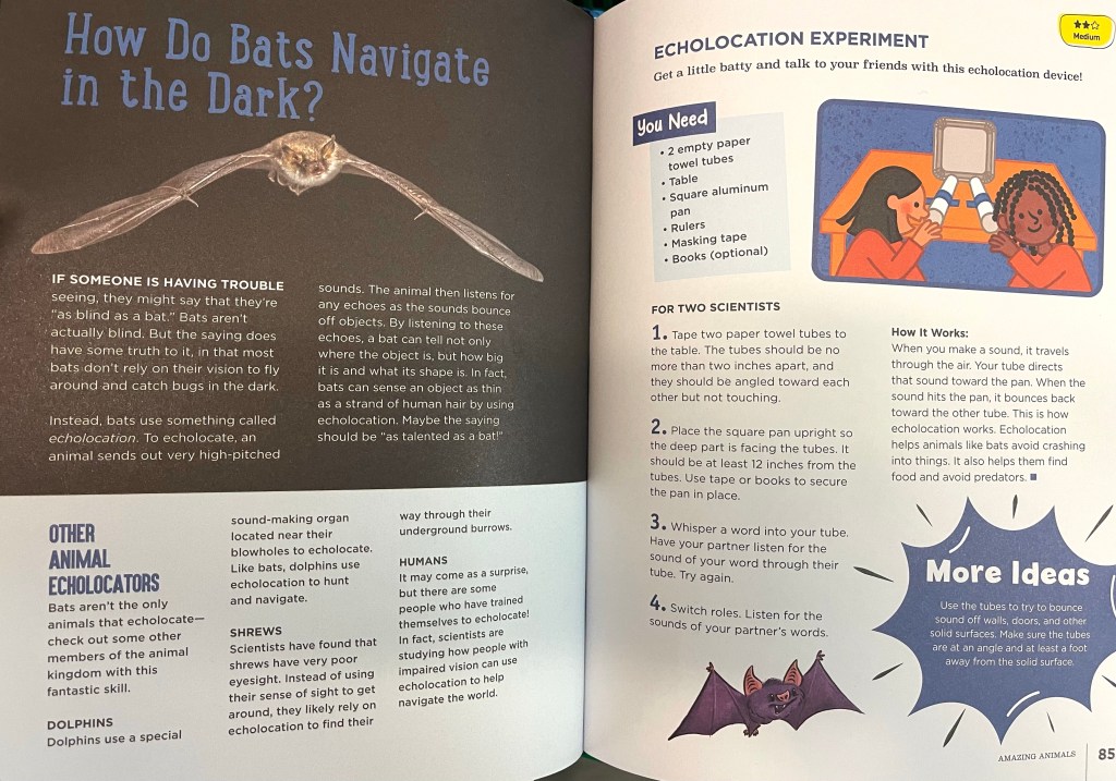 In our Science unit about the senses, we have turned focus to bats and their echolocation ability. Students will have a quiz on this tomorrow, and we did a review in class today in preparation.