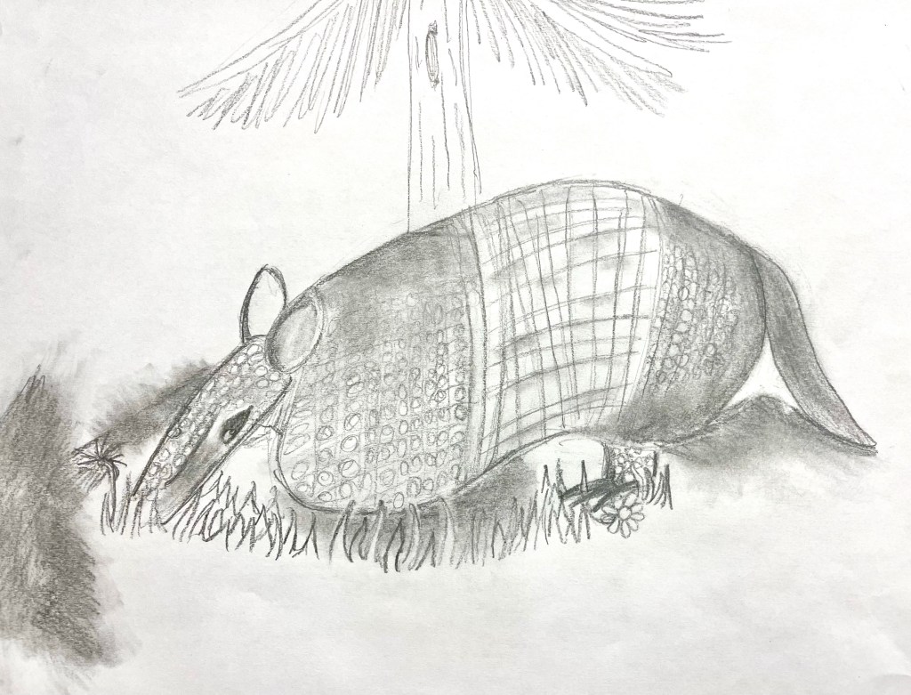 ARMADILLO DAY: Today our reading comprehension activities centred on the topic of armadillos and students made some charming pencil sketches as a bonus activity. You may want to ask your child, “What did you learn today about armadillos?”