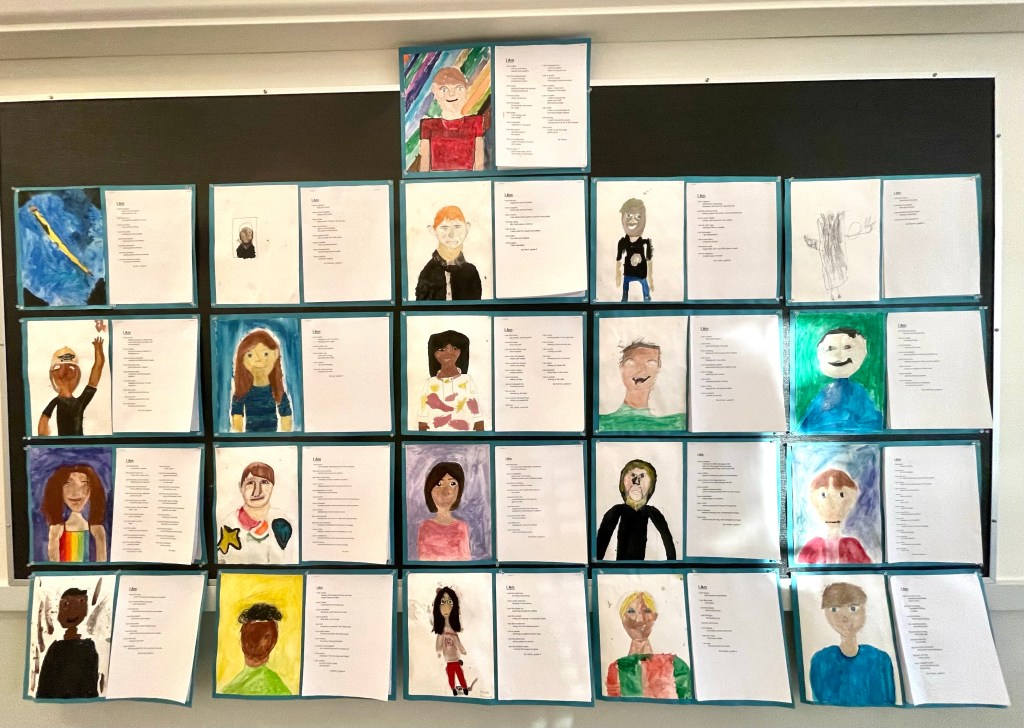 “I AM” POEMS & SELF PORTRAITS: We are so excited to have finished and posted the students’ beautiful and profound metaphorical “I am” poems. I will post close up photos tomorrow. You will be enchanted and inspired—these works are truly creative and deeply meaningful!