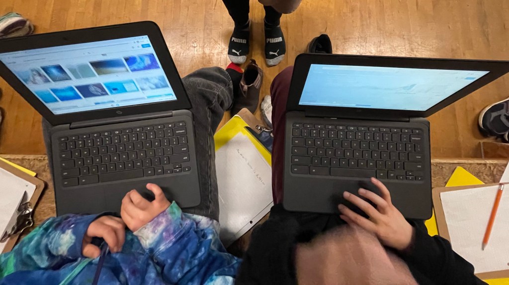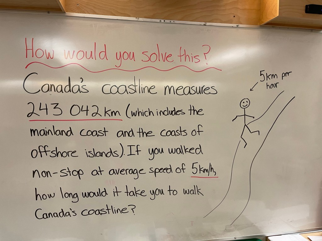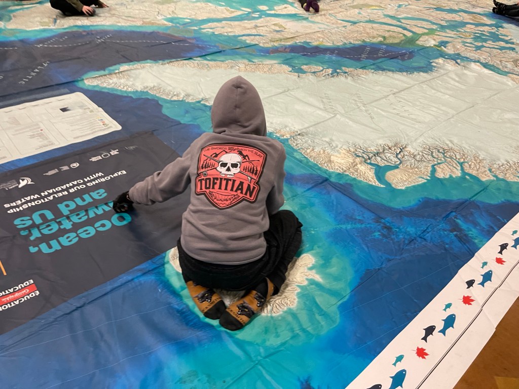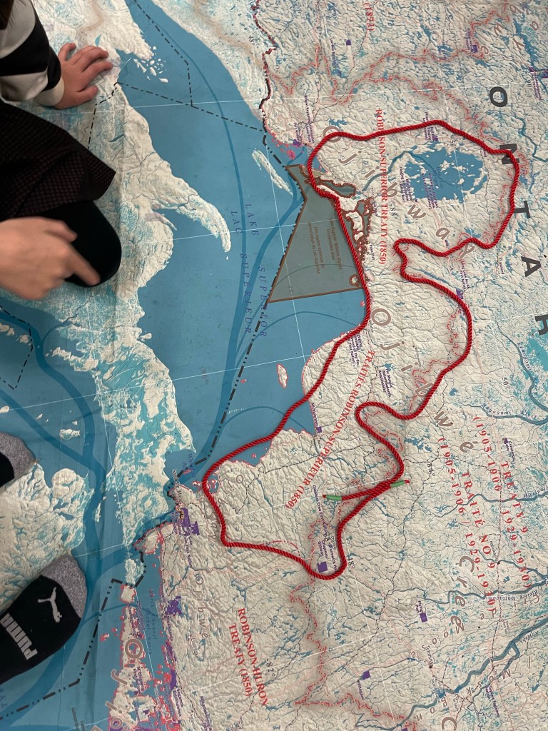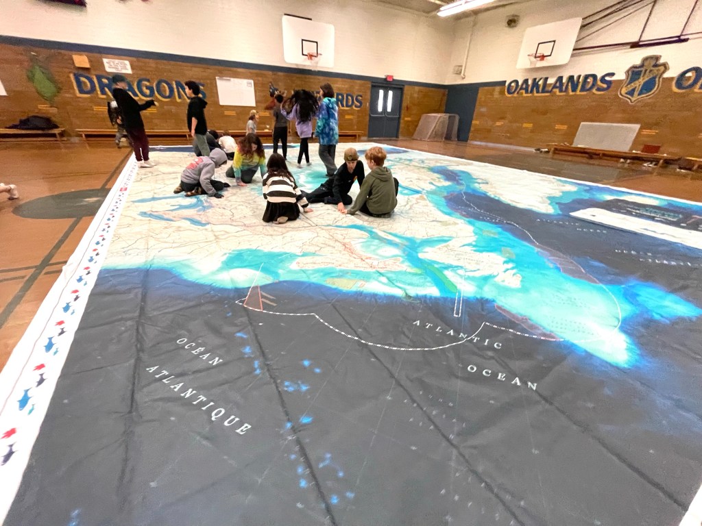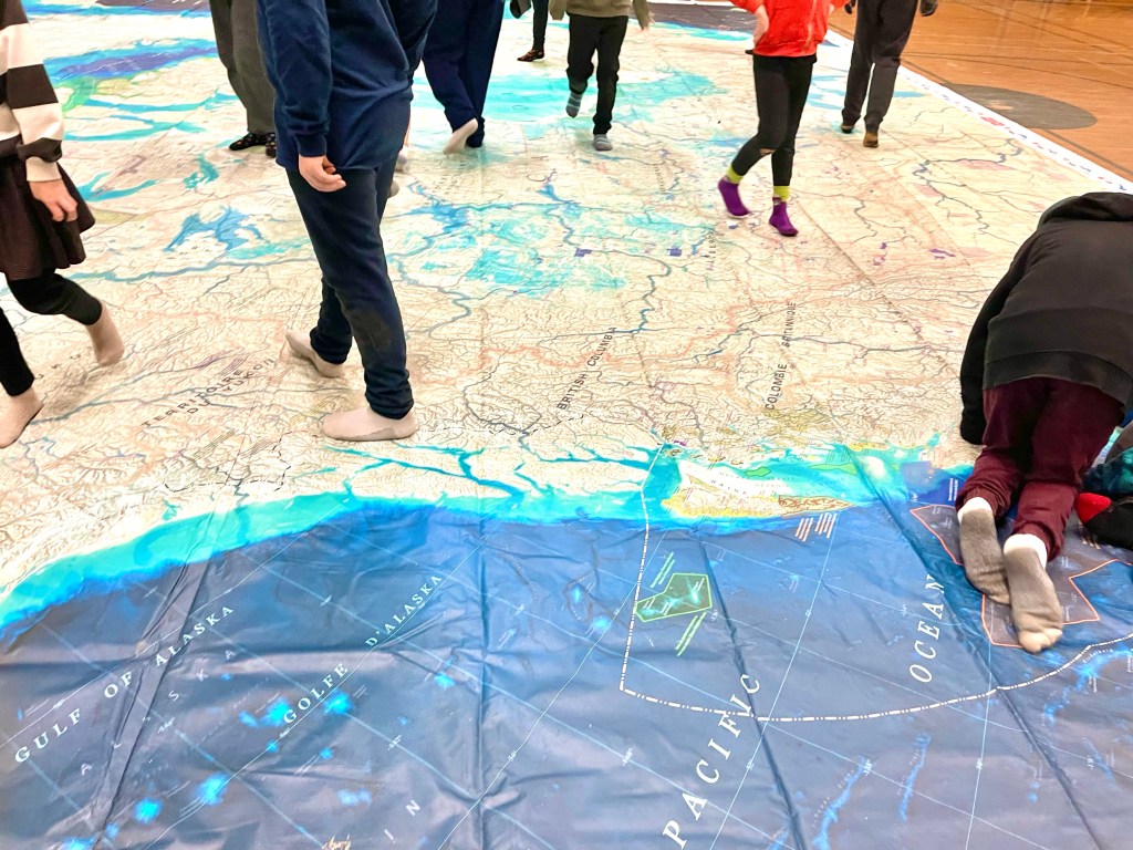 On Friday, we had a special Social Studies lesson to grow our knowledge of oceans and how to use maps. The giant map shown below was on loan from the Royal BC Museum. Students had the chance to explore it on their own and formulate their own questions. We had tape measures and ropes for students to practice making good estimates of distance. For example, the ropes were helpful in estimating the the length of meandering rivers and the perimeter of irregularly shaped islands and coastlines. Students practiced their research skills using the Chromebooks to find trustworthy sources of information to help them answer their own questions. Ask your children what they noticed and wondered about our big map!