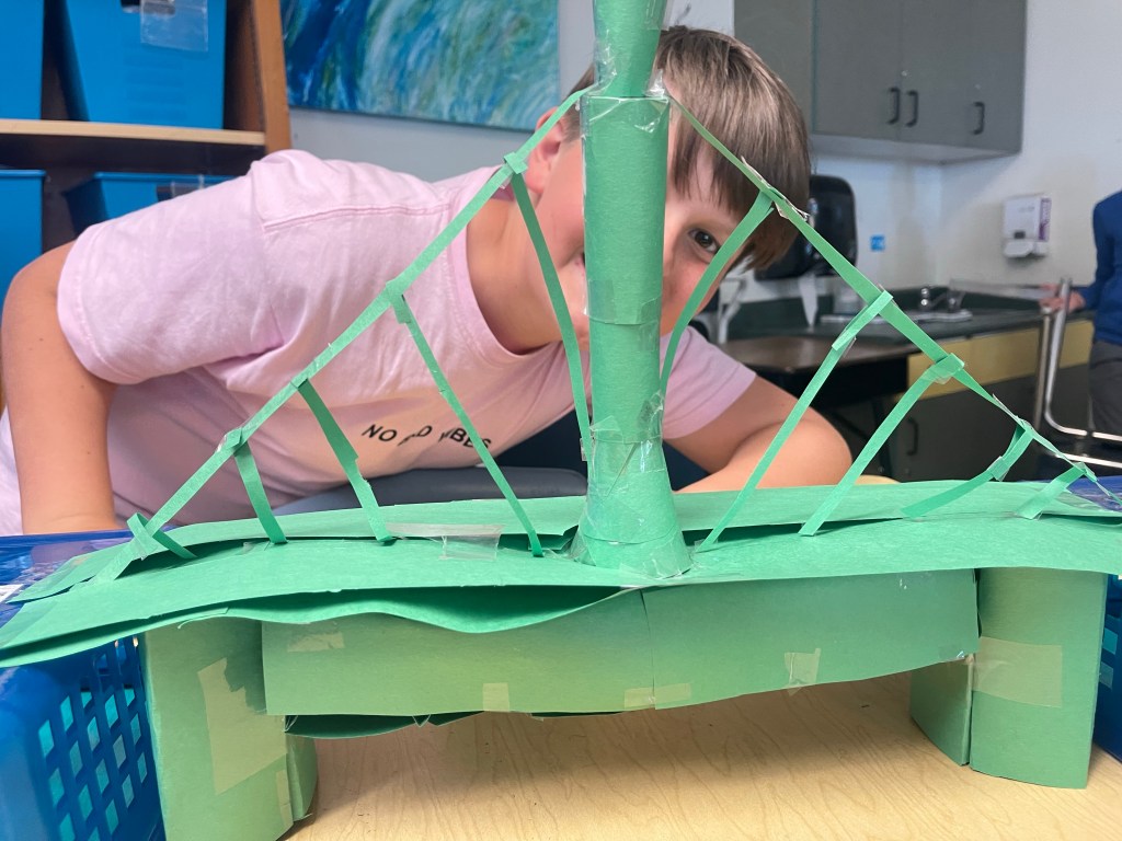 Through reading, viewing, and hands-on exploration, students have been learning about the engineering, aesthetic, historical, and cultural aspects of bridges around the world.
