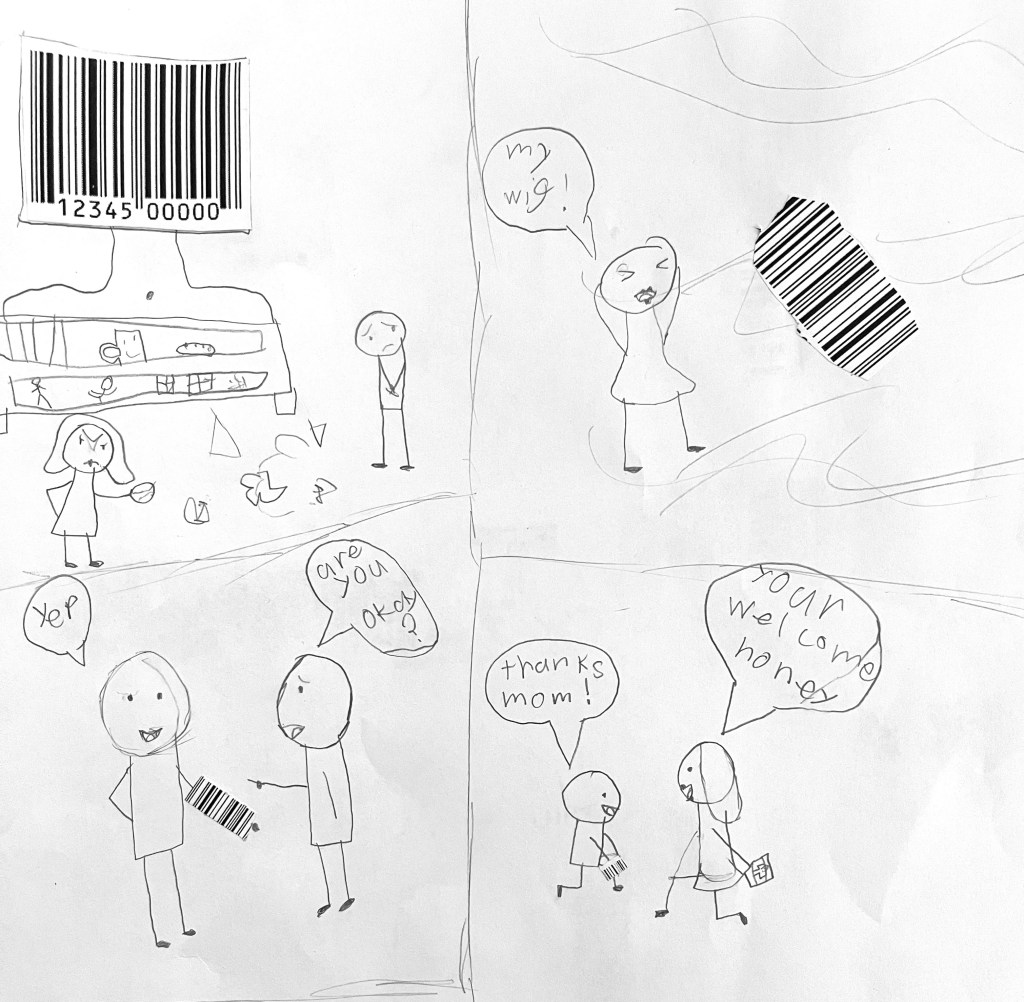 In Art, student have been trying new creative image development strategies—including doing a brainstorming exercise that resulted in making thought provoking art by transforming images of barcodes…