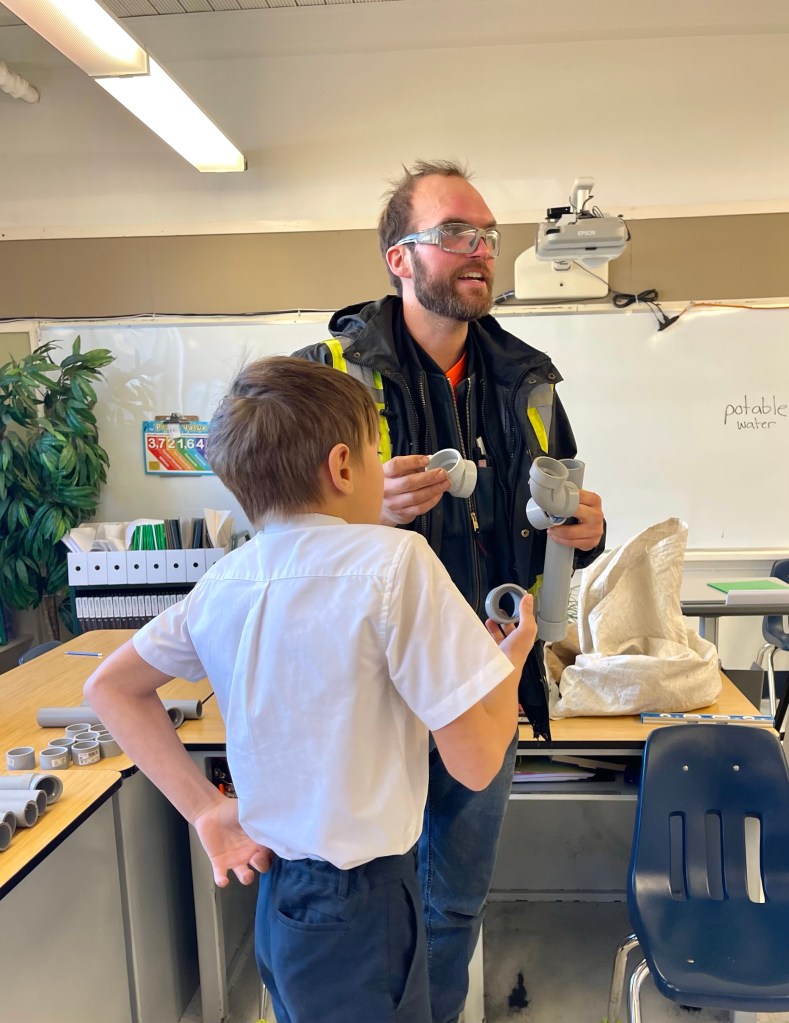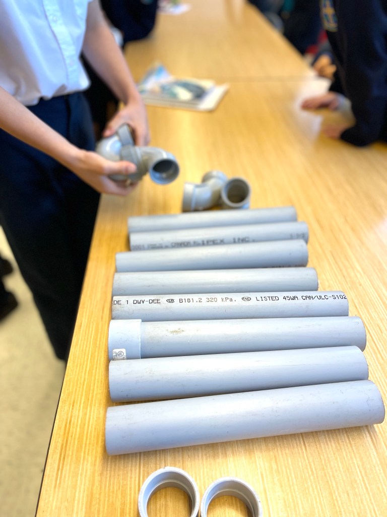 Students examined pipes, fittings, and other gadgets, and they were enthralled with the task to work together to create a waste water piping system, which they tested with a marble. In the processes, they learned first hand about the importance of considering the grade of a pipe! Thank you for an awesome presentation, Mr. Watson!