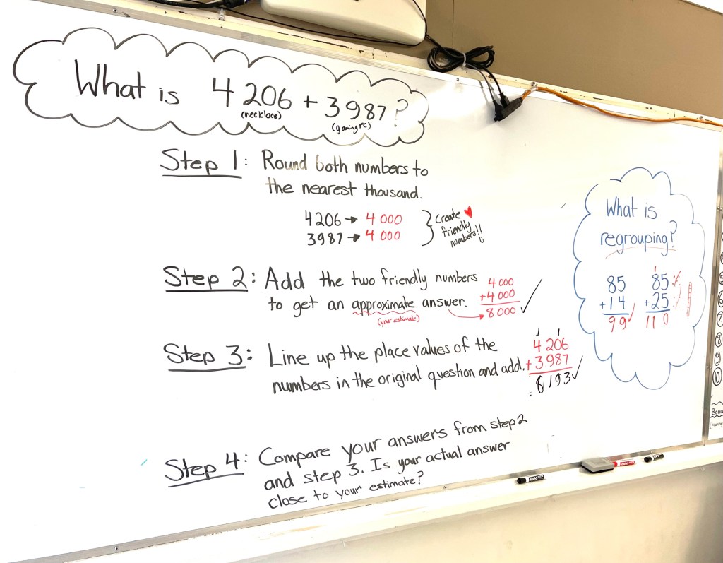 In Math, we finished our Rounding unit and students were asked to bring home their quizzes to share with their families. We are now reviewing multi-digit addition with regrouping and using our rounding and mental math skills to self-check our work.