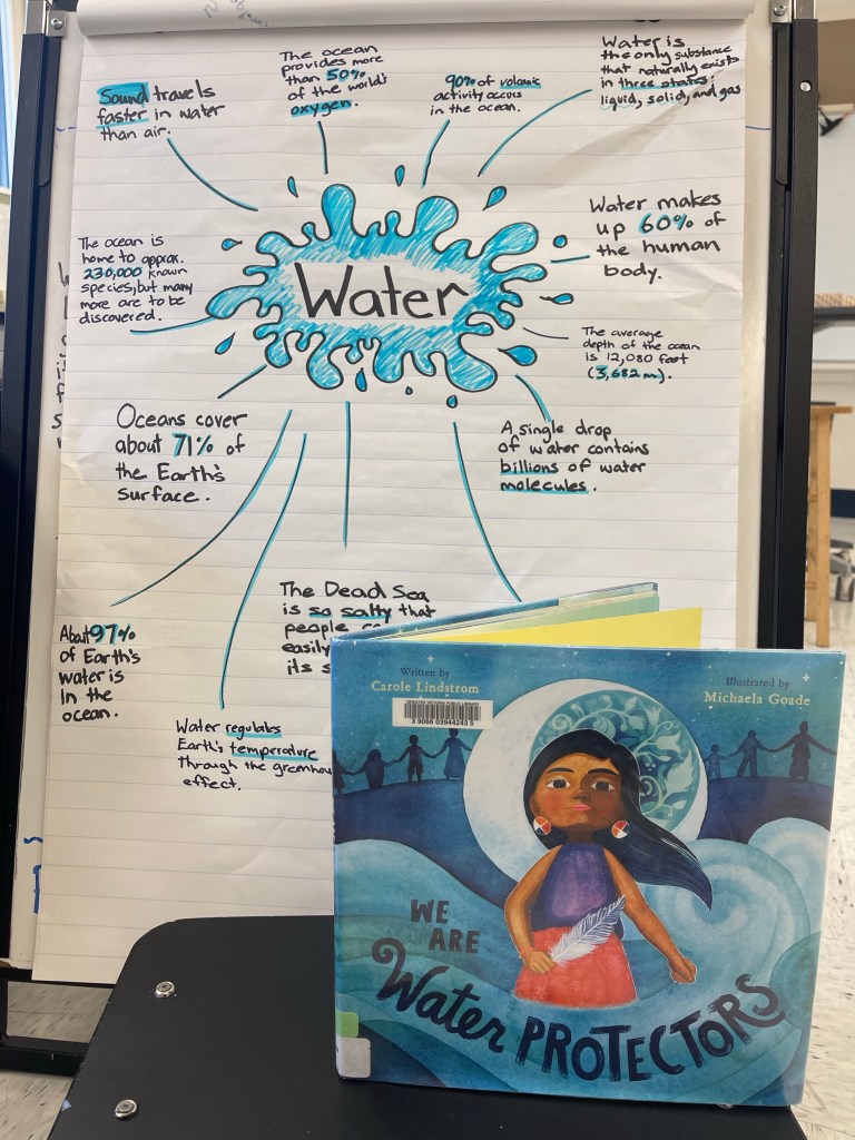 In Social Studies, we read the book “We Are Water Protectors” by Carole Lindstrom, who is Anishinaabe/Metis and an enrolled member of the Turtle Mountain Band of Ojibwe. Her award-winning book weaves in a powerful metaphor about a “snake” that poisons the water and land. We discussed a notion of ethical and sustainable resource management and what happens when humans—whether out of greed, carelessness, ignorance or for another reason—make decisions that harm the environment, particularly water sources. In our analysis, some students also made a biblical connection to the serpent’s temptation of Eve in Genesis. In our water inquiry we will continue to explore the connection between people and land through time and with an Indigenous lens.