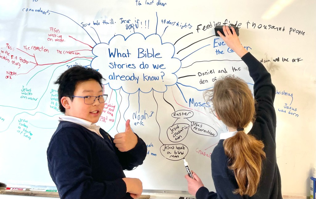 In Religion class, we have been learning stories and parables from the Bible. As a major project this term, students will choose a Bible story or parable to memorize or faithfully retell in a creative way for their classmates. Students will be asked to give context and explain the meaning of the story as they understand it.