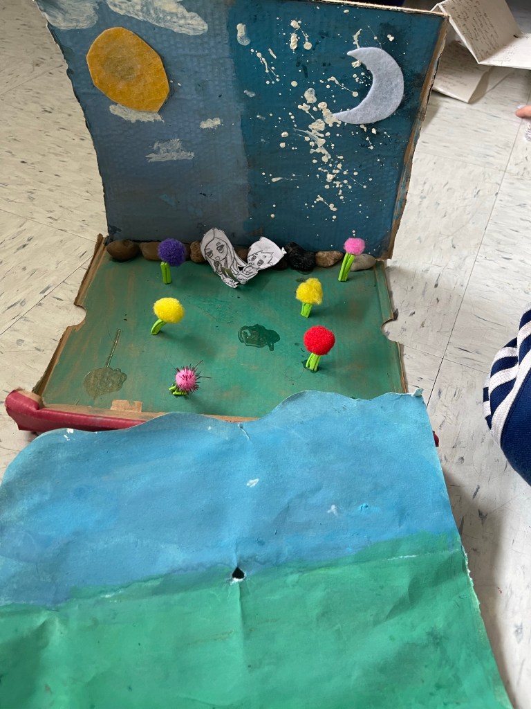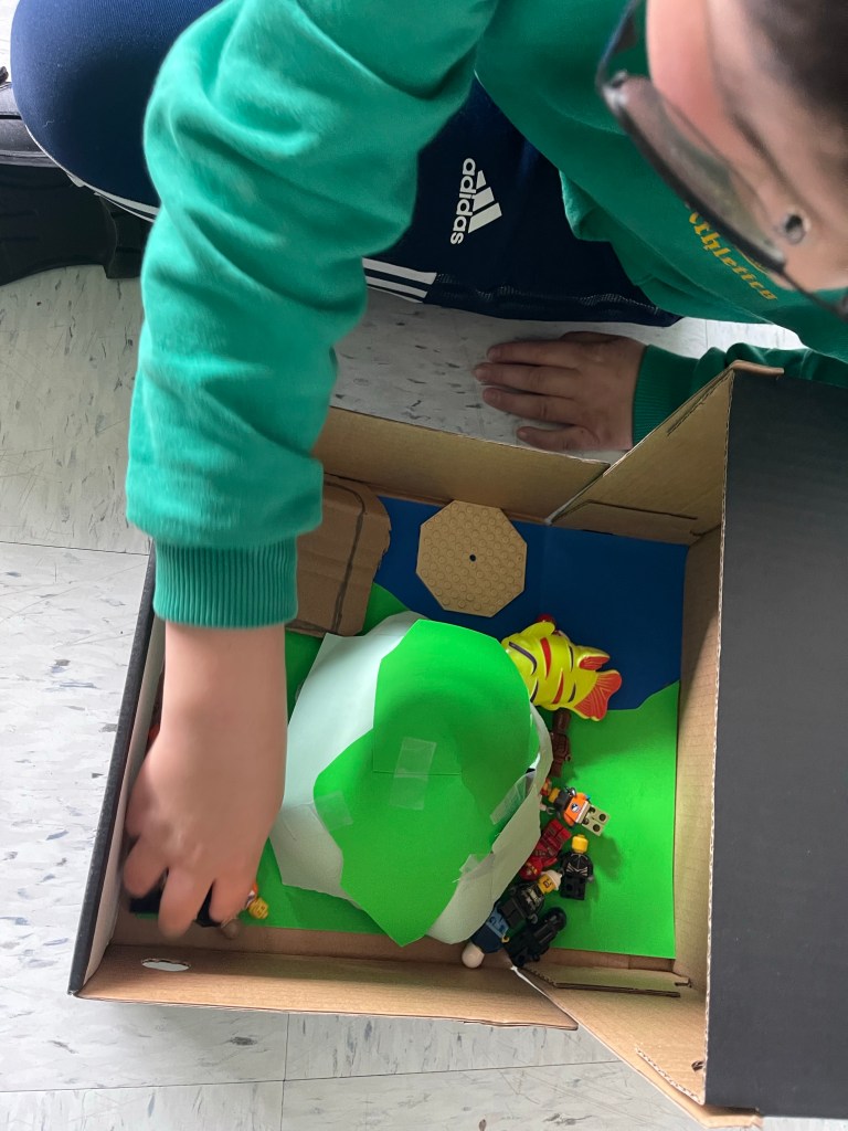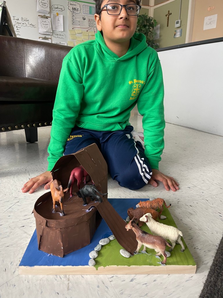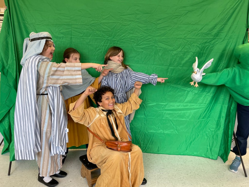 We’ve had a lot of drama in our class lately! Students have been experimenting with handmade dioramas, puppets, props, costumes and a green screen as they retell and reenact many great Bible stories. They have been strengthening their creativity, confidence, and skills on the stage.