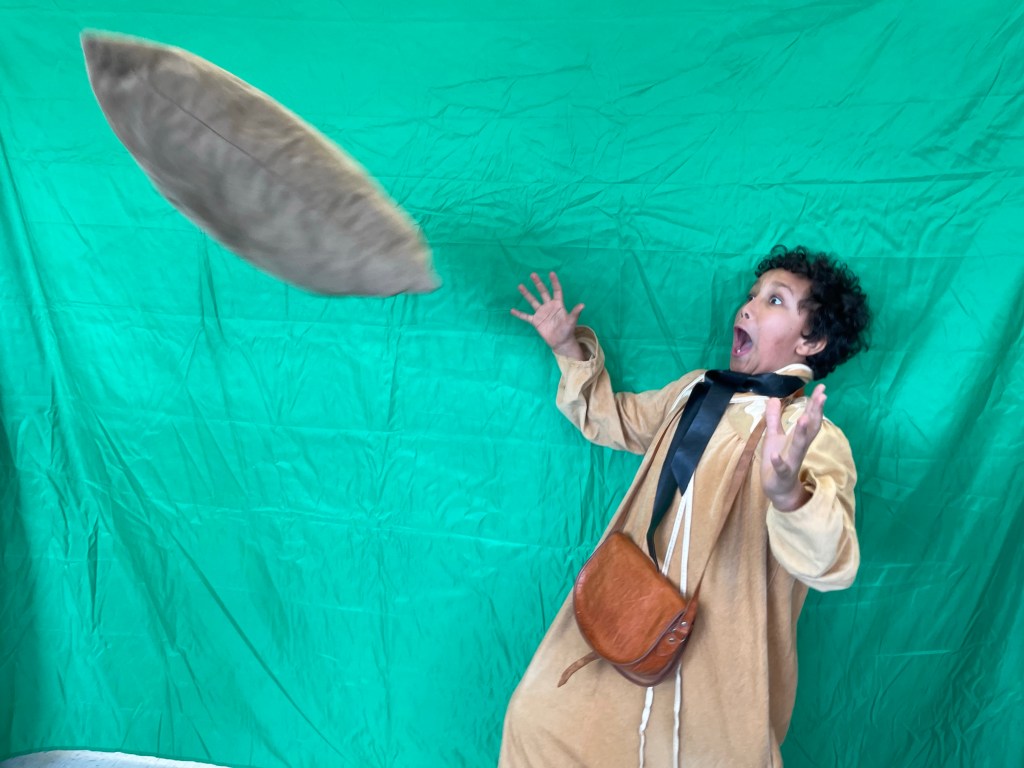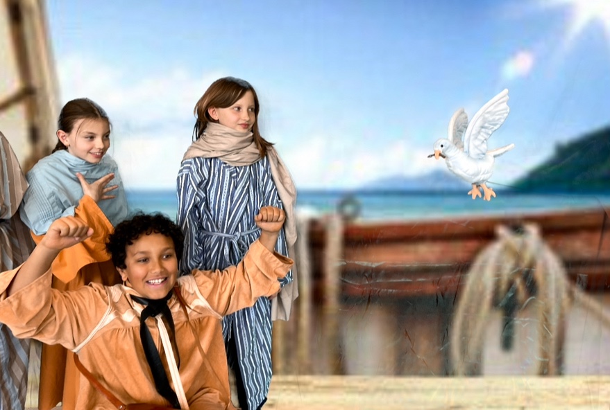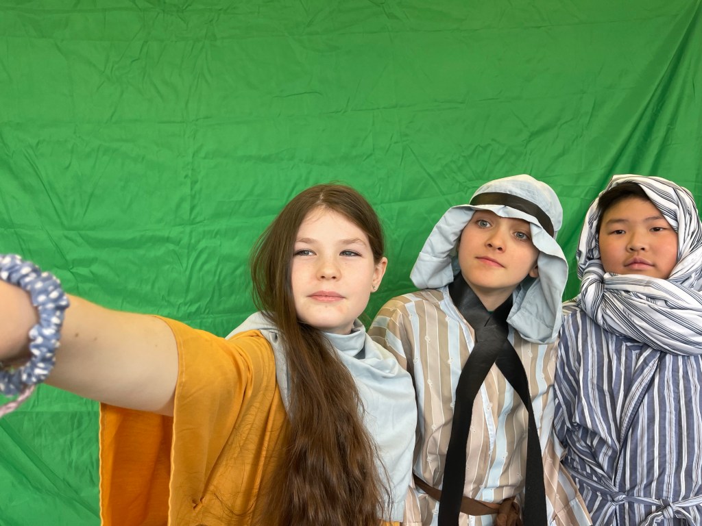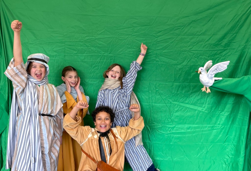 Using iMovie, we superimpose some interesting backgrounds onto our green screen to further enhance the stories and inspire the imagination. Do you recognize the Biblical scenes below?
