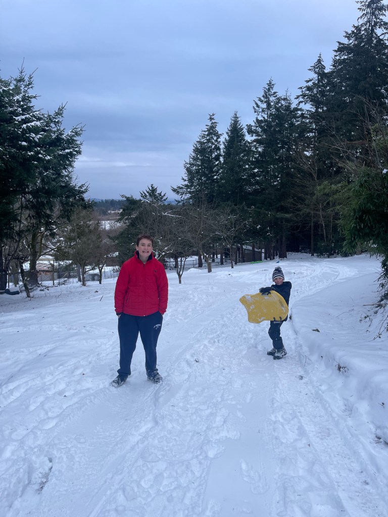 Alas, my family doesn’t own any sleds, but we were able to make our kids’ kayak do the trick for some tobogganing down the driveway.