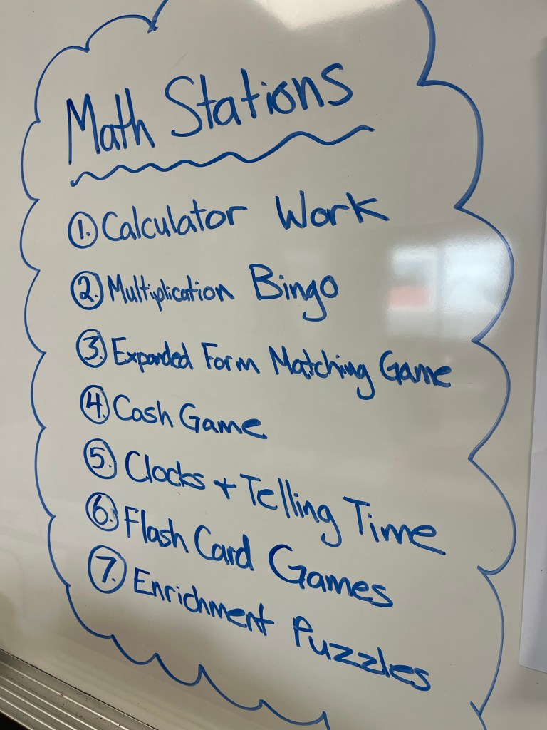 In addition to our regular Math lessons, students have been getting in extra practice and enrichment with a rotating selection of Math Stations.