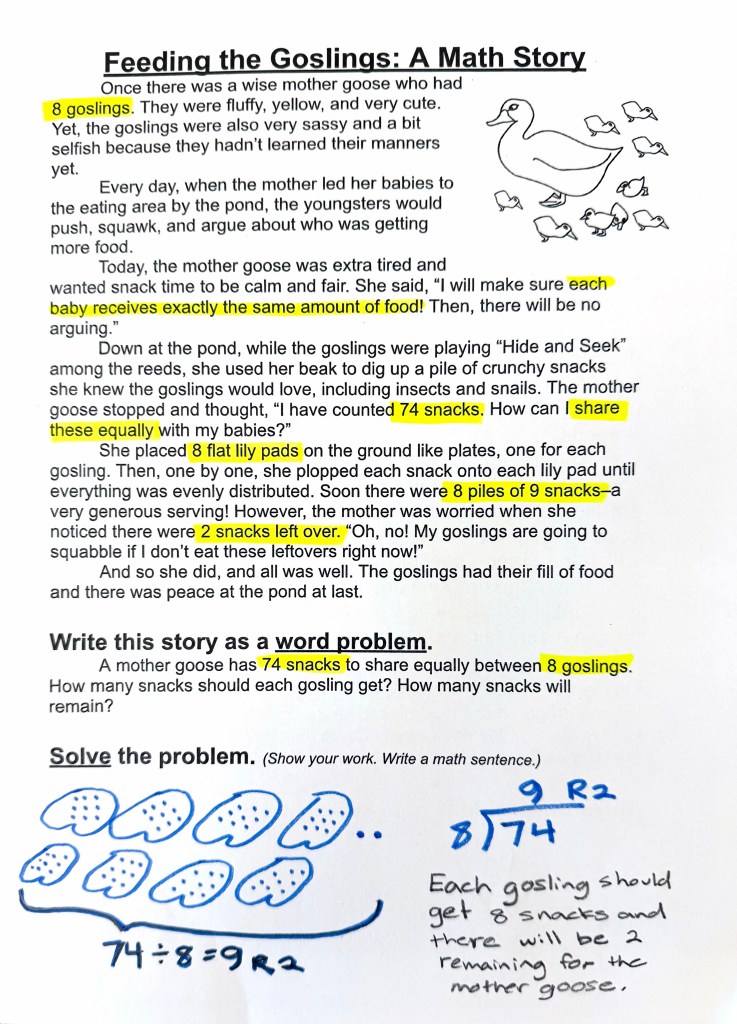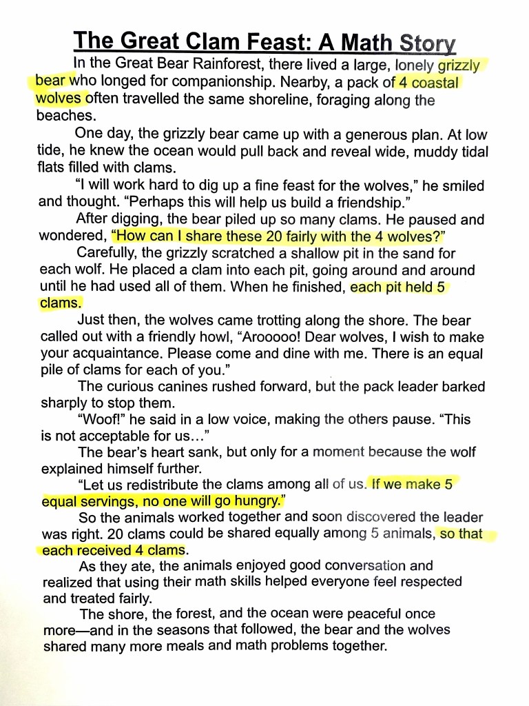 Here is an example of a math story I created this week to model…