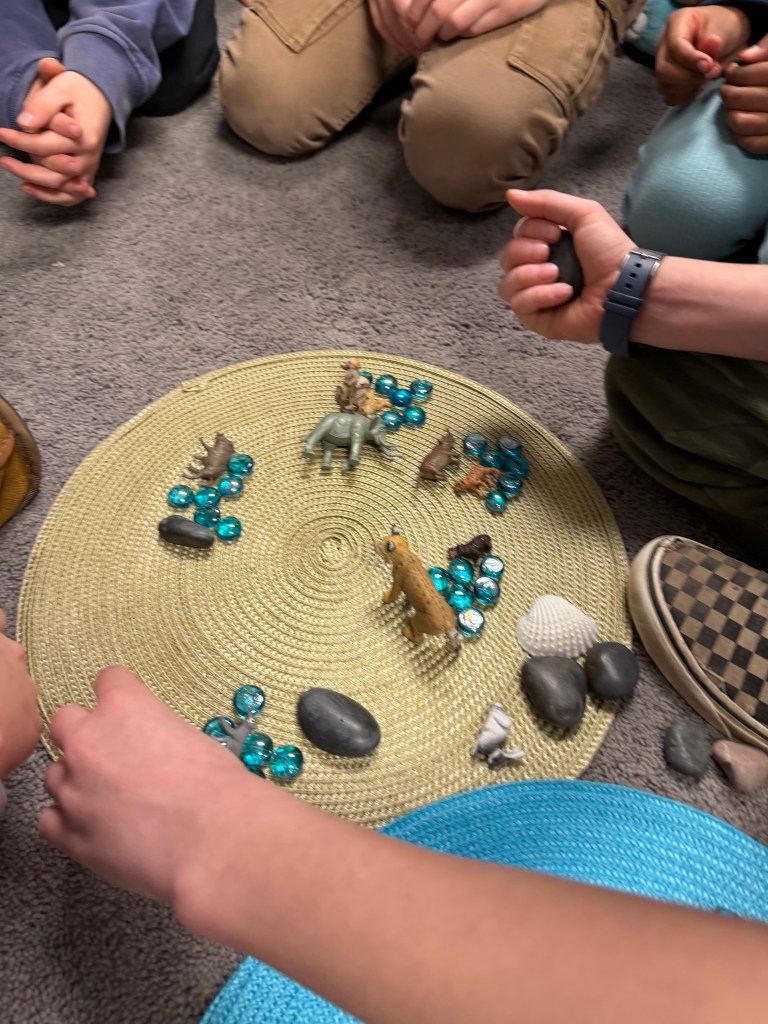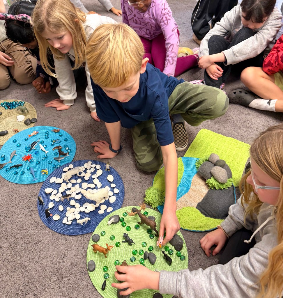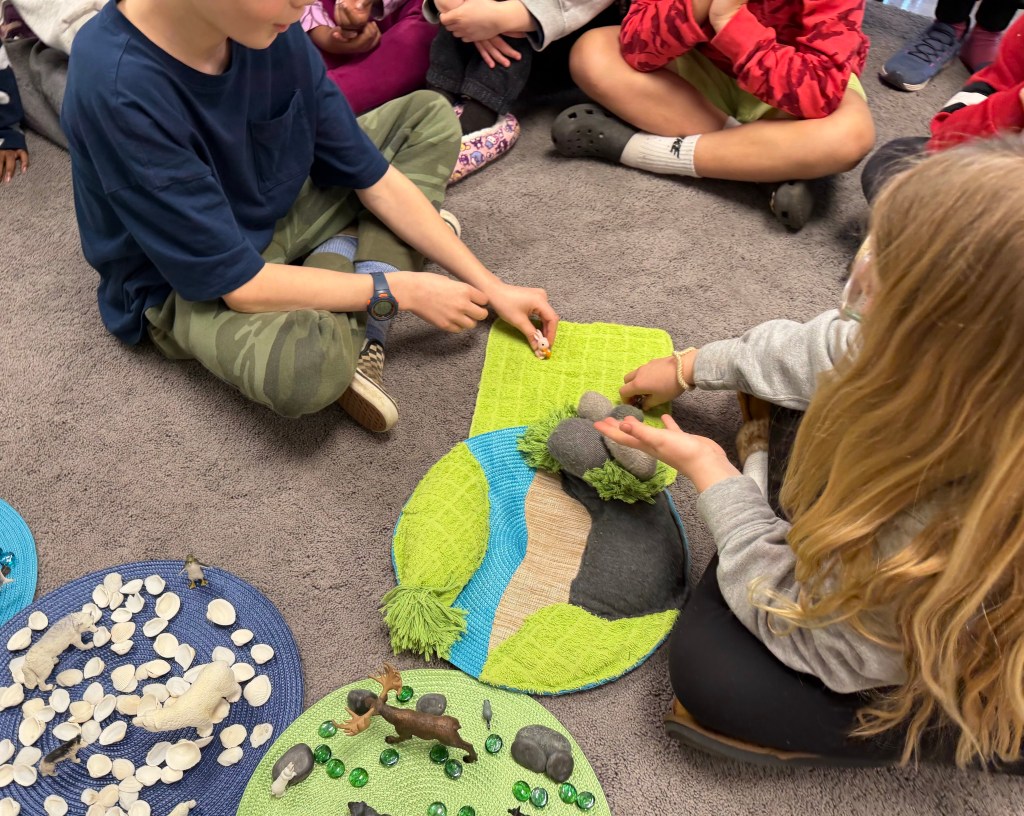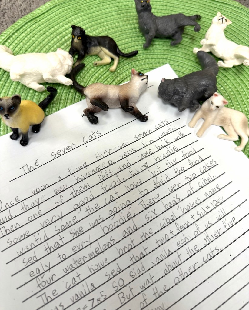 Learning through play and storytelling is a timeless approach that offers a flexible, personalized, hands on experience of more abstract concepts. This helps so that when students get to working with symbols on a page they have a frame of reference.