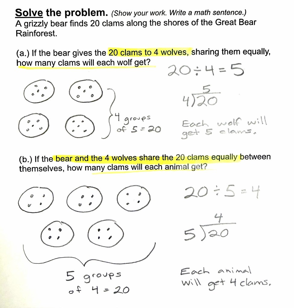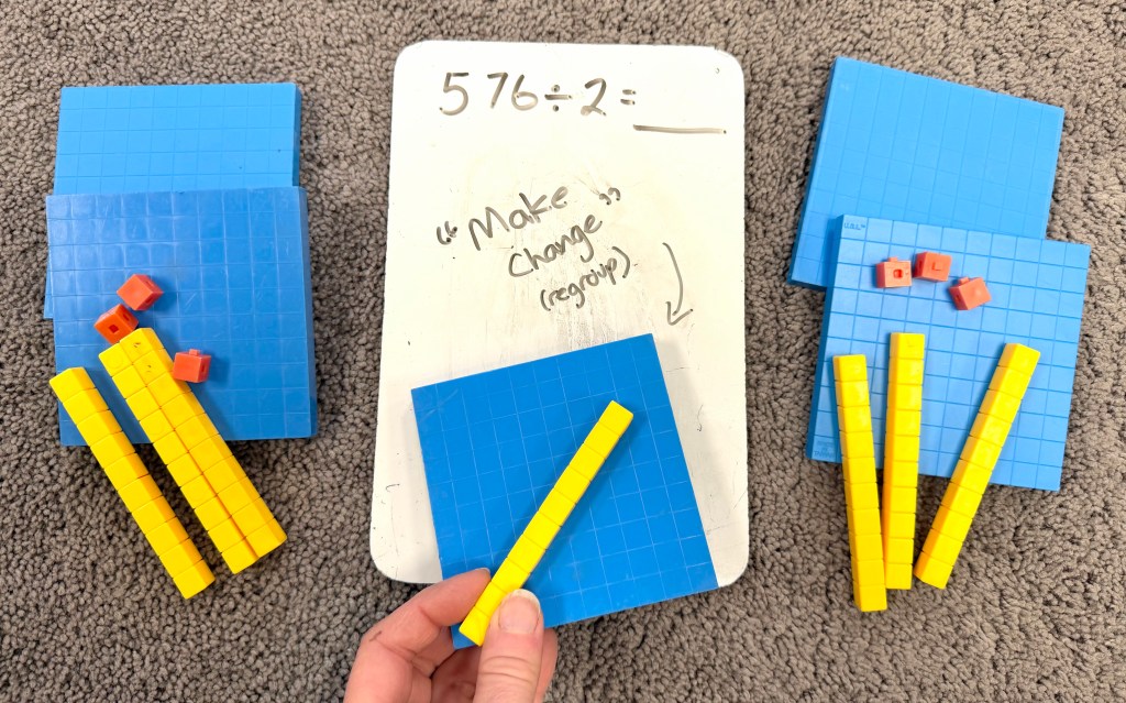 Right now we are spending more time deepening our understanding of division by using math manipulatives, problem solving, and math stories—the focus of this blog post today.