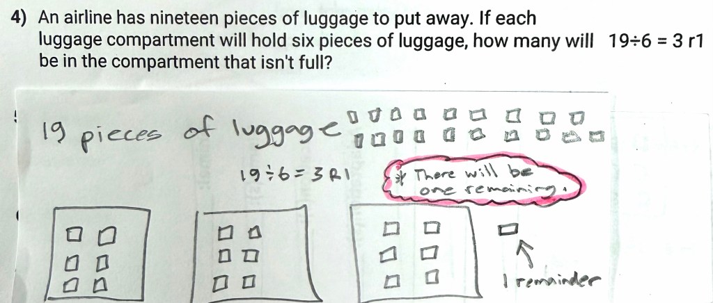 Today we also worked on strengthening our word-problem comprehension skills. Students practiced reading carefully for understanding and drawing pictures to help make sense of the questions before solving them.