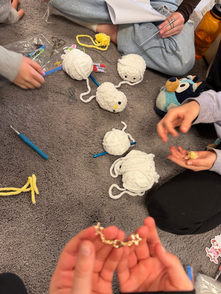 We have such an amazing range of P.I.P.s on the go, including songwriting, novel writing, making a sticker company, sewing, puppet-making, comic making, clay sculpture, and planning a profitable lemonade stand. We also have some wonderful crochet animals coming to life including a flock of cute little ducks!
