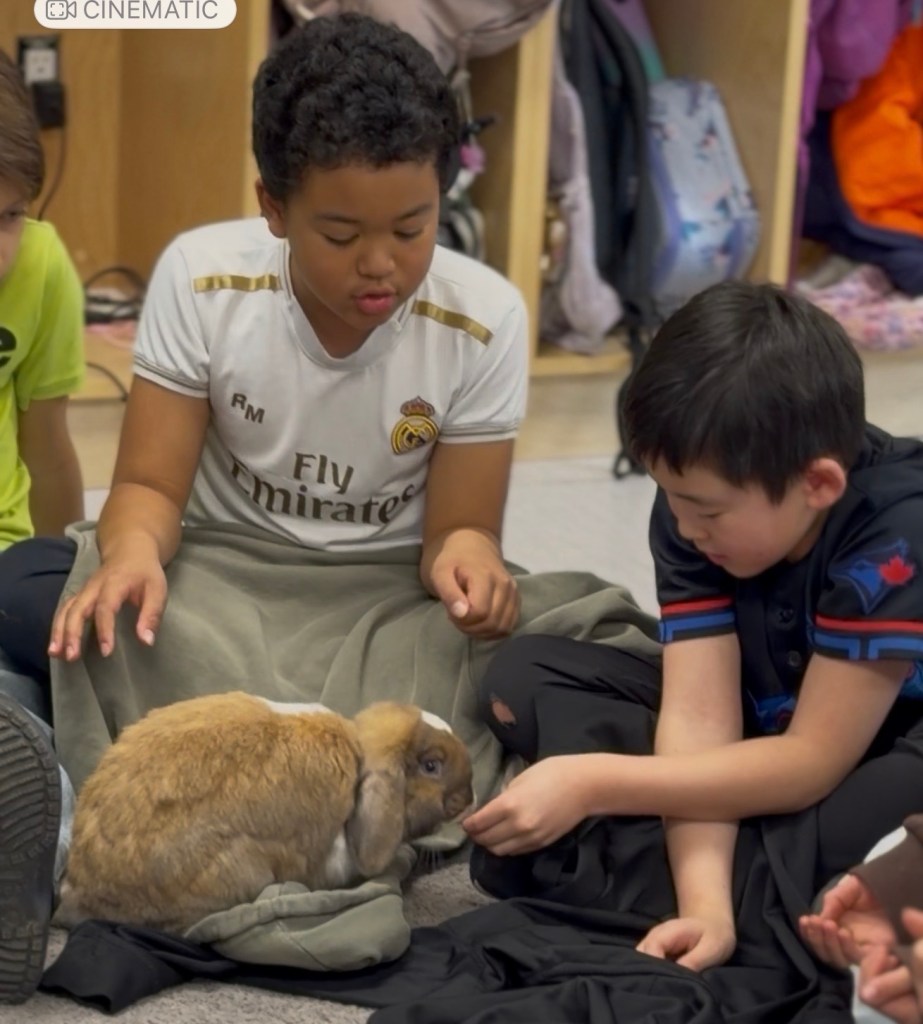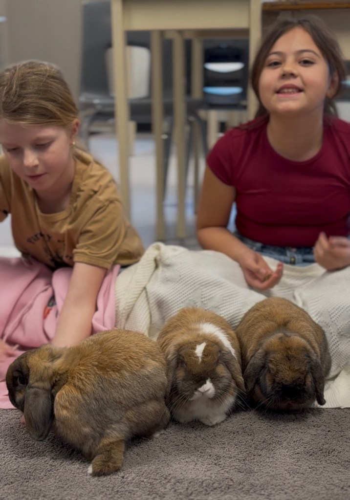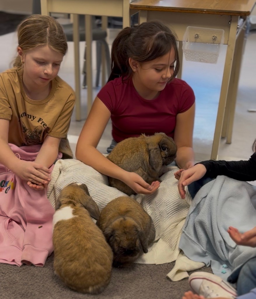Discussing how we can thoughtful care for God’s creation in Crew has special meaning when the bunnies are visiting.