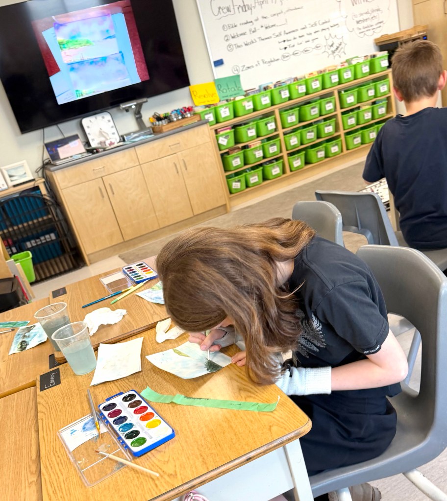 In Art, we continue to work on the Learning Coats project, and we are also now deep into our Salish Sea Watercolour unit—the pieces are looking so beautiful! Here are some paintings still in progress…