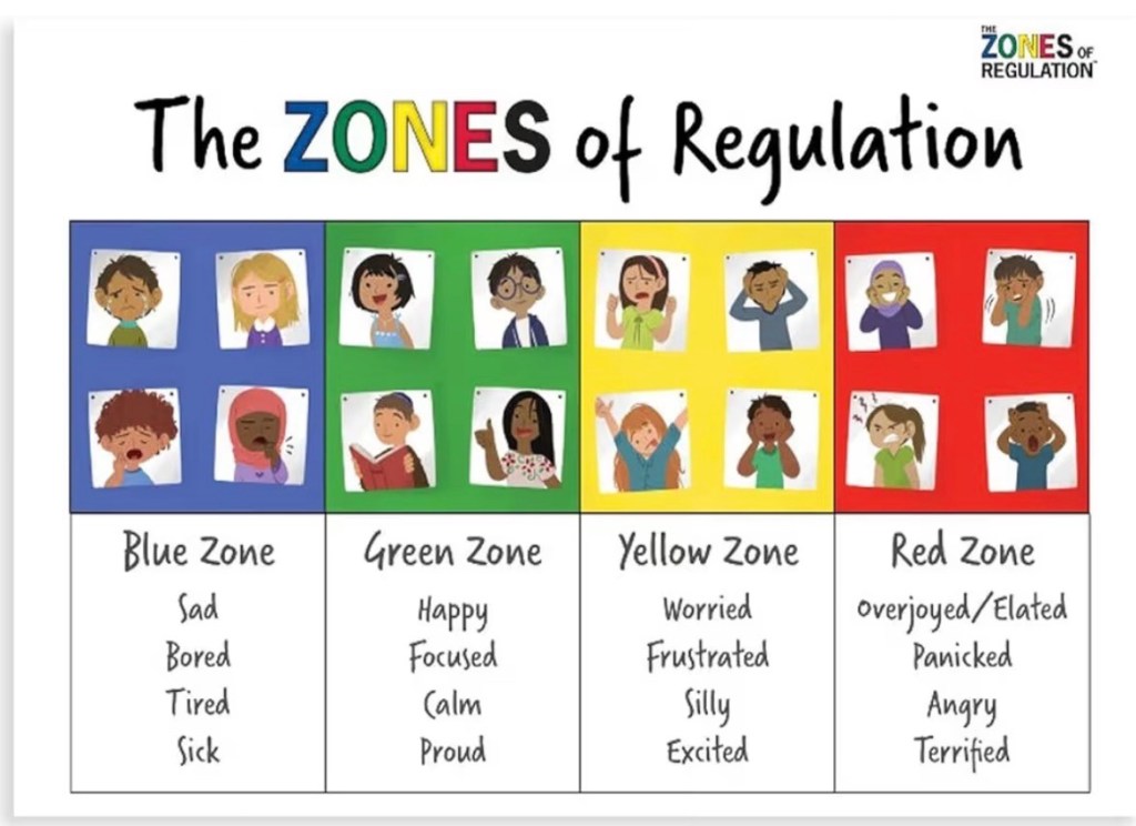We explored the “Zones of Regulation” framework to help us have a shorthand for expressing what we are feeling.