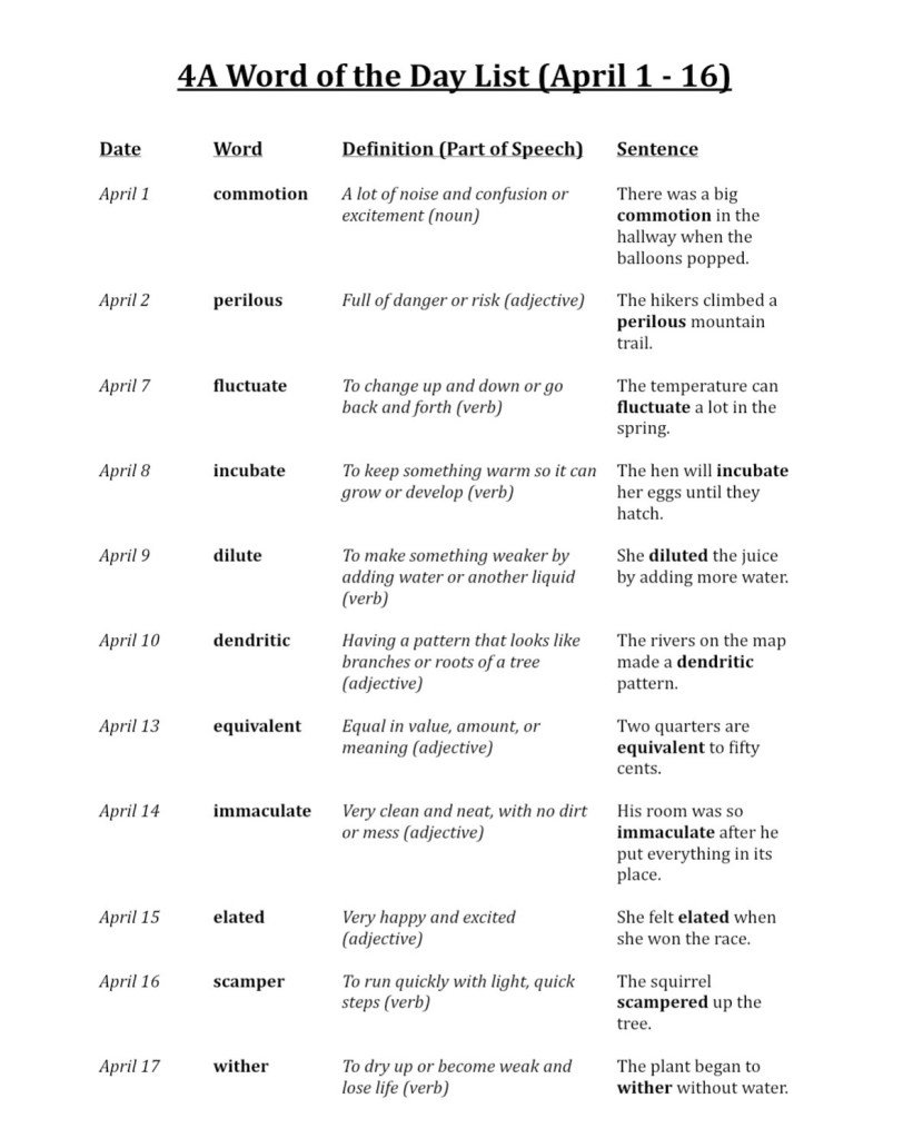 Each day, we explore a new, challenging word (its meaning, spelling, part of speech, and origin). It’s been so fun to see these words start to appear naturally in student writing and to hear them pop up in everyday conversation. You can keep track of these daily words too as they are written in the agendas each day.