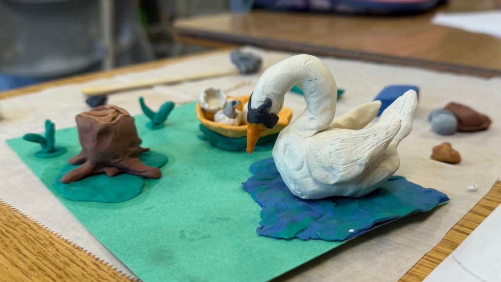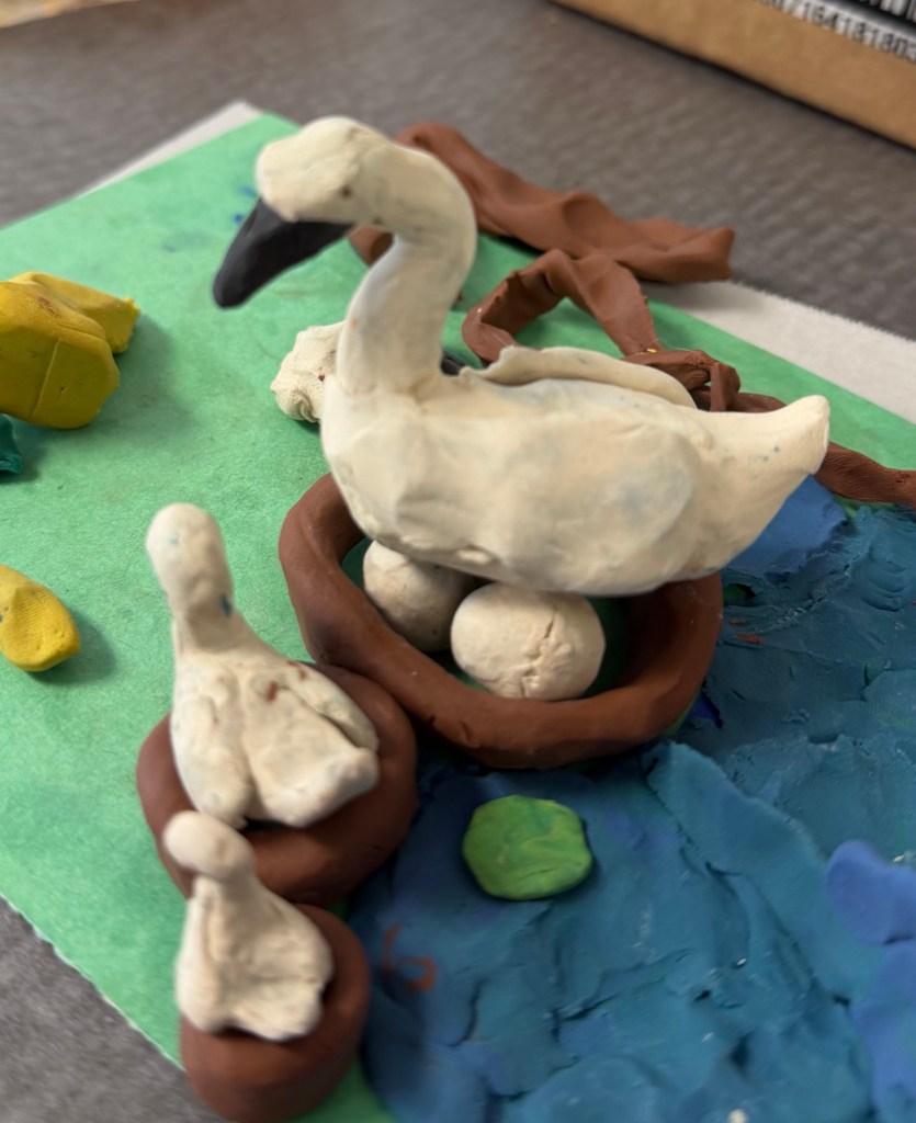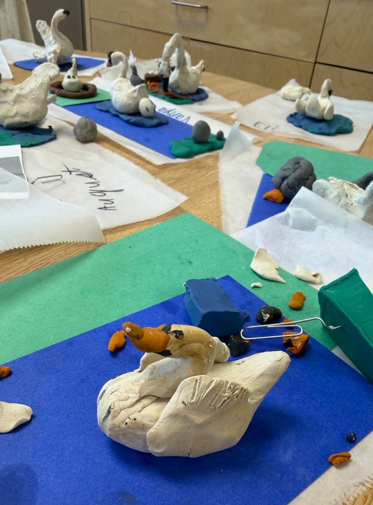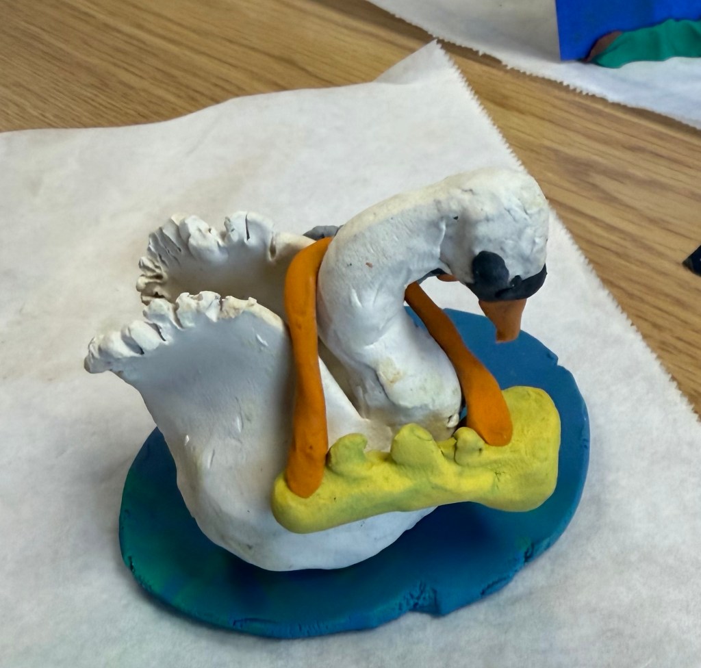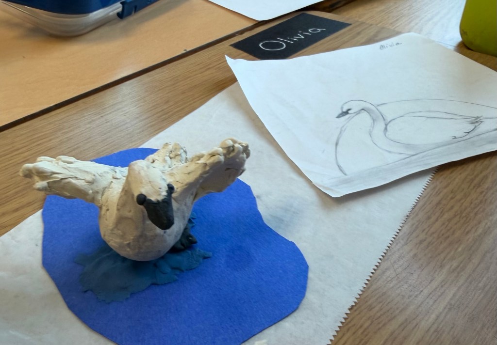 They have analyzed photos and watched swan videos to help them draw sketches and then sculpt swans from plasticine.