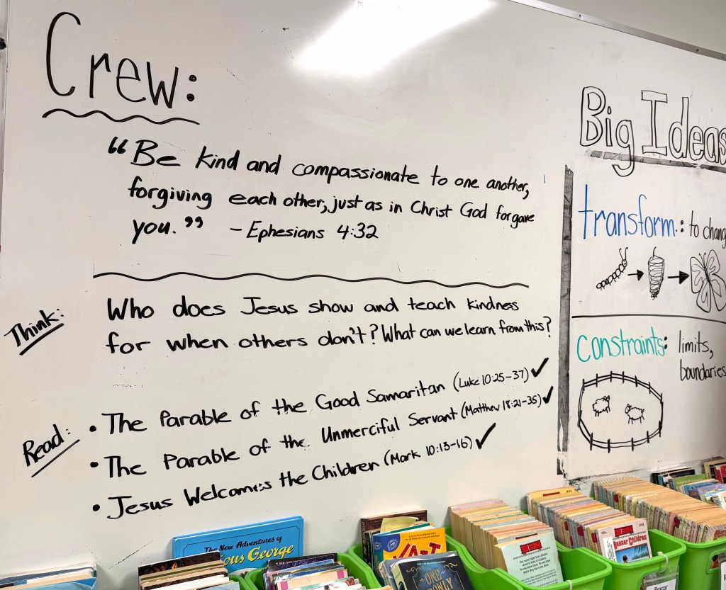 Next week, we focus in Crew (and throughout the curriculum) on the concept of “transformation”—so today we soft-launched that topic with a brainstorm so students can have time to beginning noticing transformations in our world.
