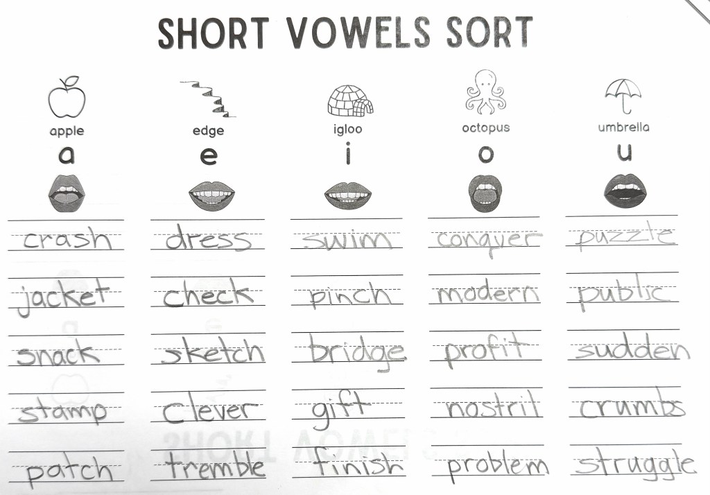 Our next Spelling list focuses on reviewing short vowel sounds with a focus on some words that have come up in students’ writing lately…