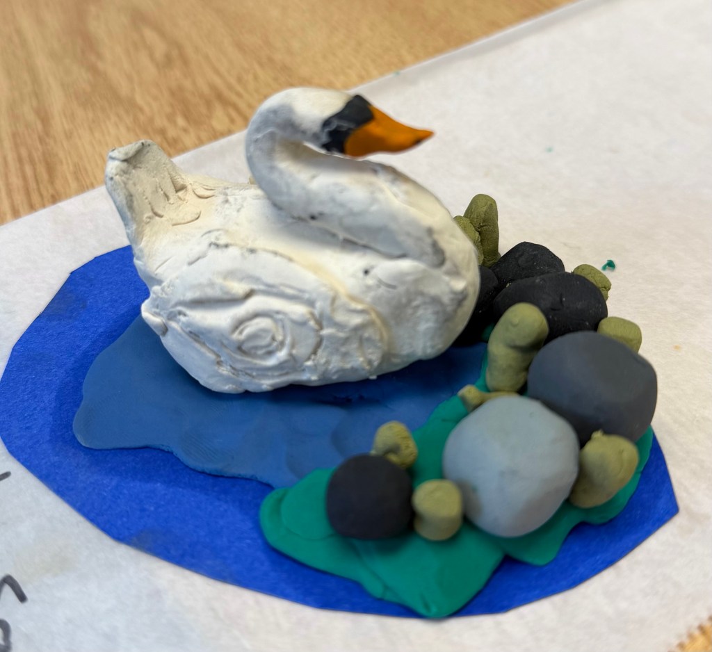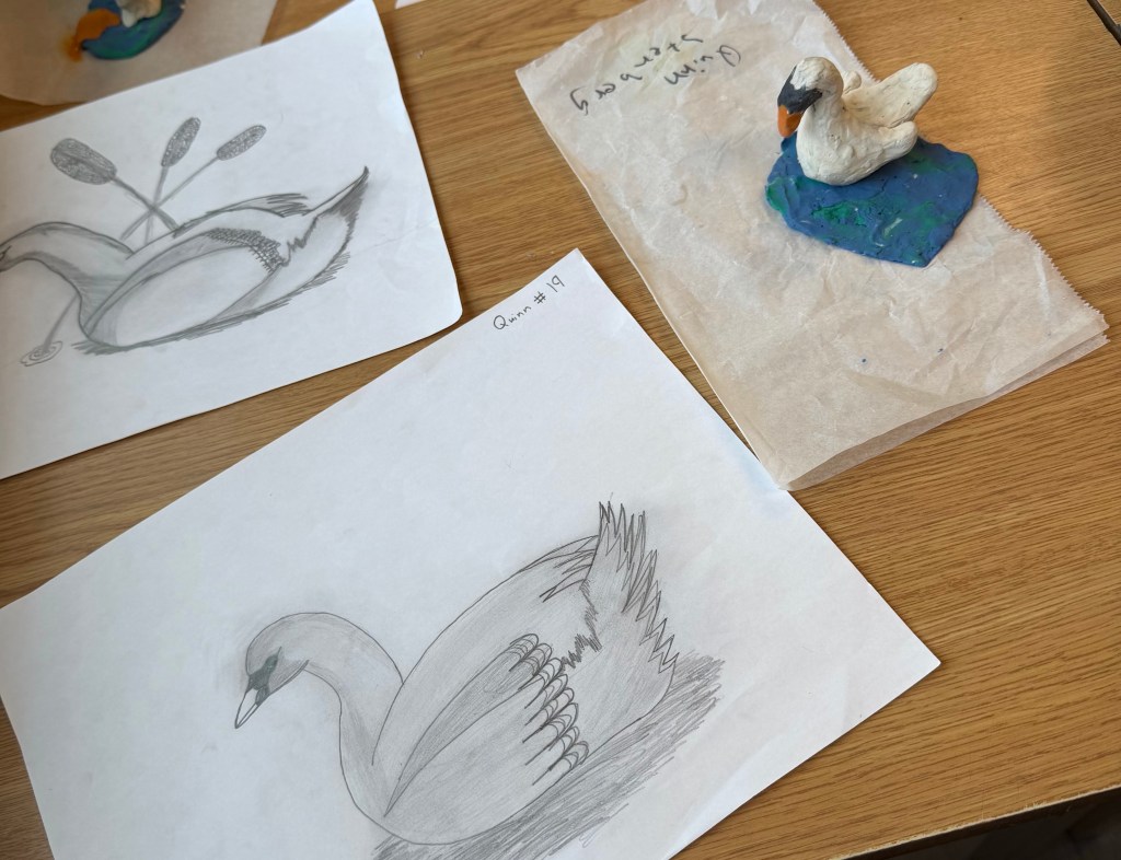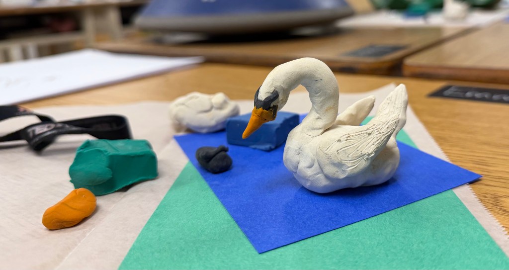 They have analyzed photos and watched swan videos to help them draw sketches and then sculpt swans from plasticine.