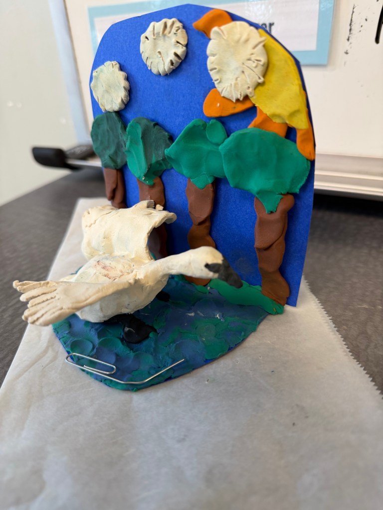 We have continued our novel study of “The Trumpet of the Swan” by E. B. White.