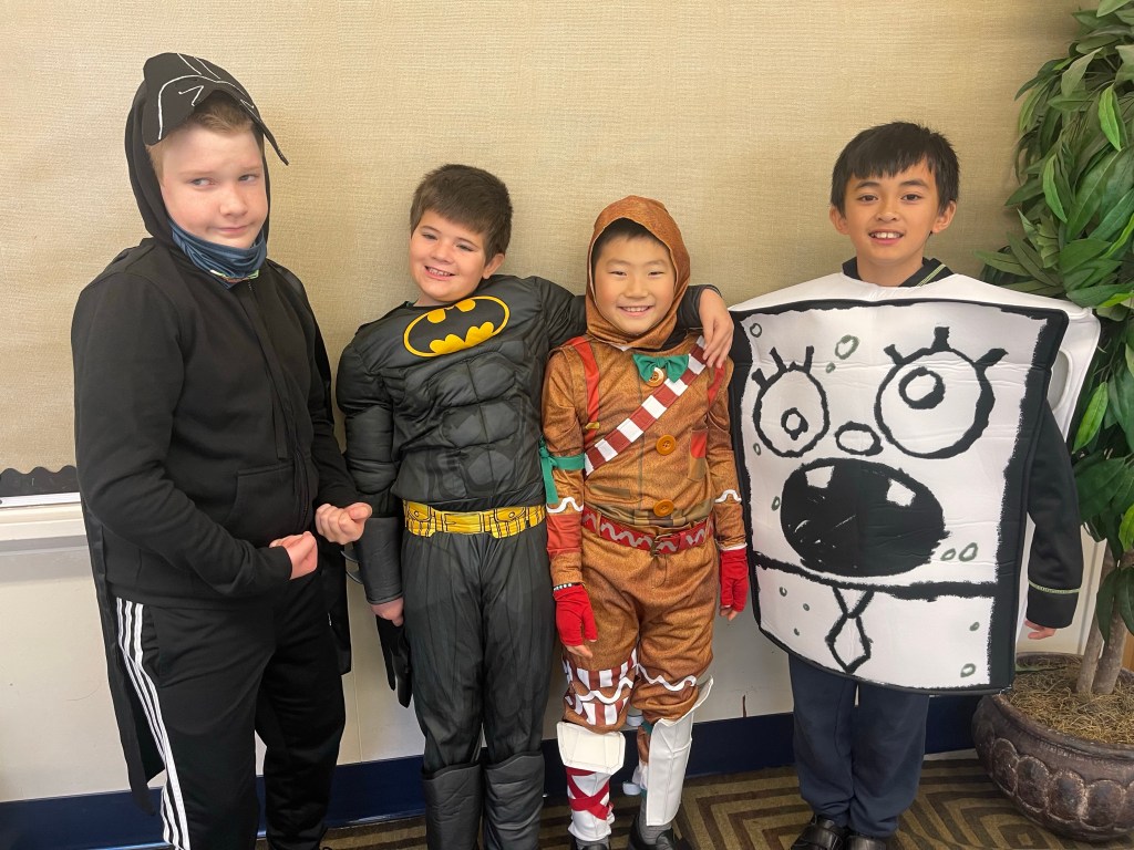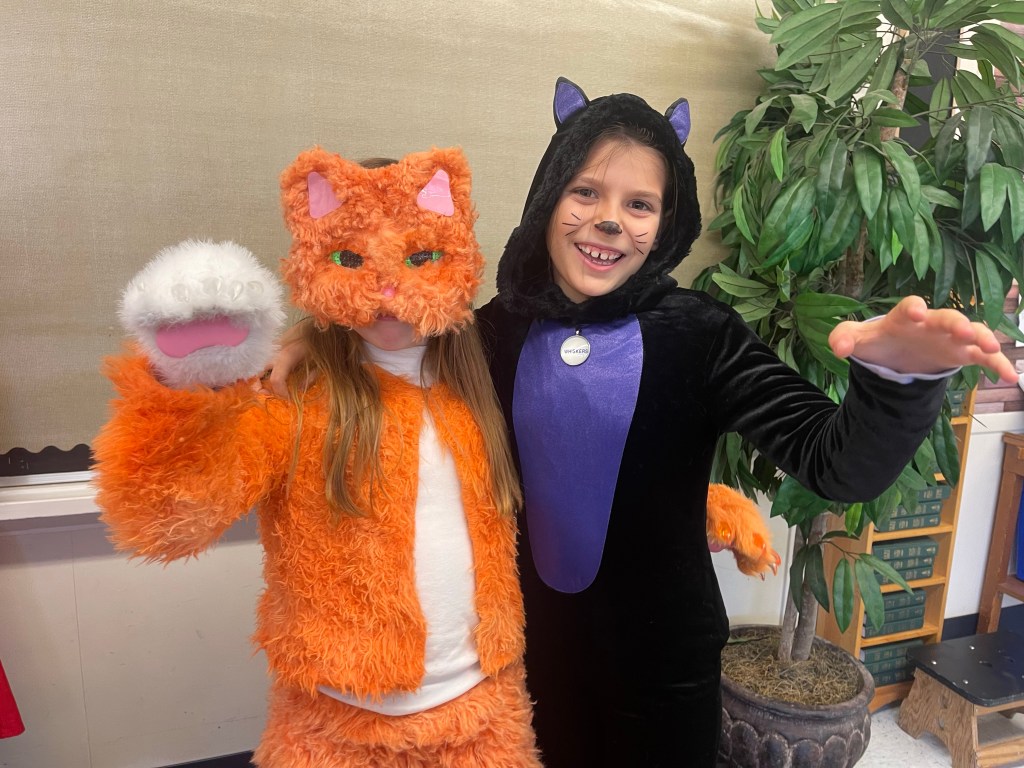 On Halloween, we made the most of the fact that students were wearing their costumes by inviting kids to come to the front of the room and make up a story on the spot. Here are some of those wonderful spontaneous tales…