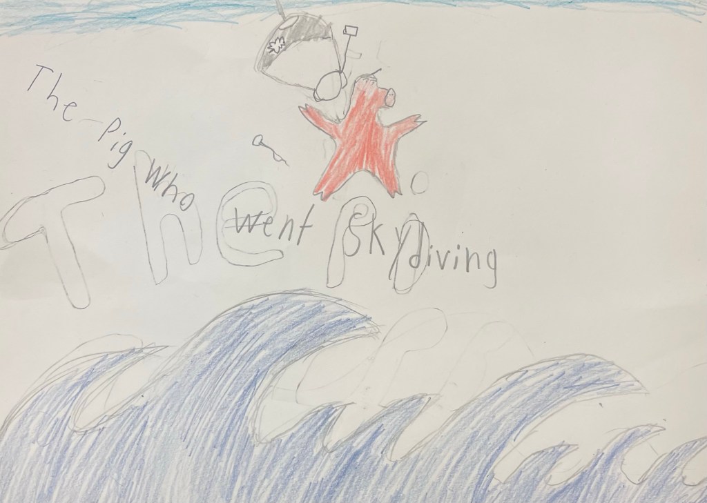 I read aloud the story, “The Tiger Who Came to Tea,” and encouraged students to use that tale of an unexpected visitor as a framework for their own: “The __(character)___ Who Came to ____(activity or place)_____”.