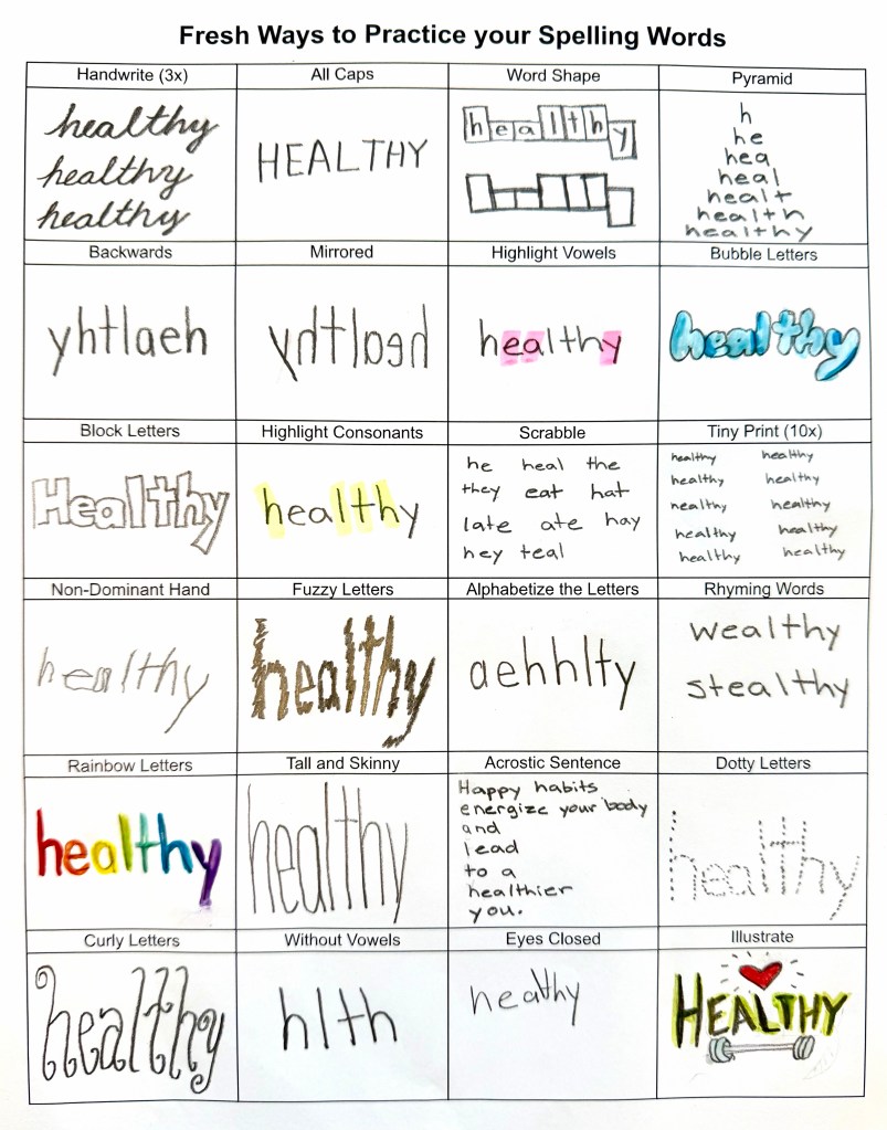 With guidance, students are now taking increased responsibility for their individual spelling learning by going a step beyond copying their spelling corrections into their personal spelling dictionaries and also playing with the words in interesting visual ways to understand and encode them deeper into memory.