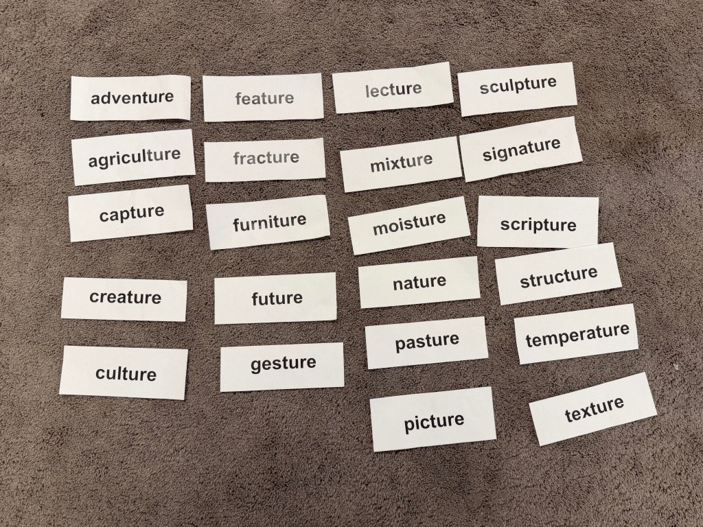In our word study program in Language Arts, we reviewed homophones (there/their/they’re, to/two/too, your/you’re) and then studied words with the suffix –TURE. We have also being learning how to alphabetize lists of words.