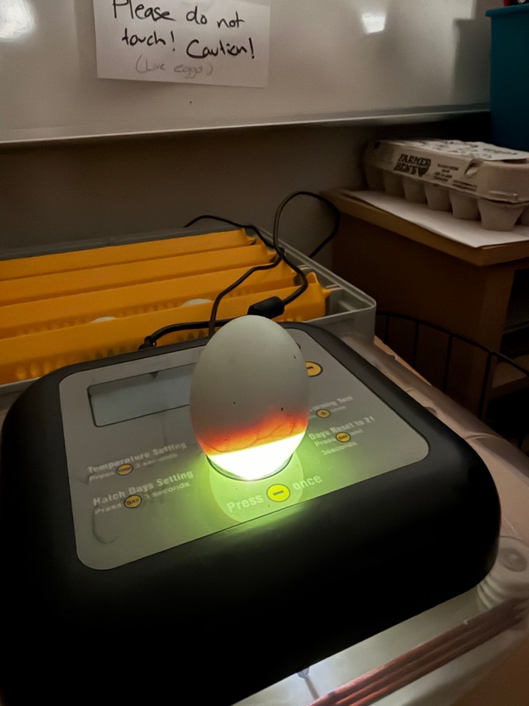 Our class incubation project is underway and we are set to hatch on April 28th. We will candle the eggs next Tuesday in class.
