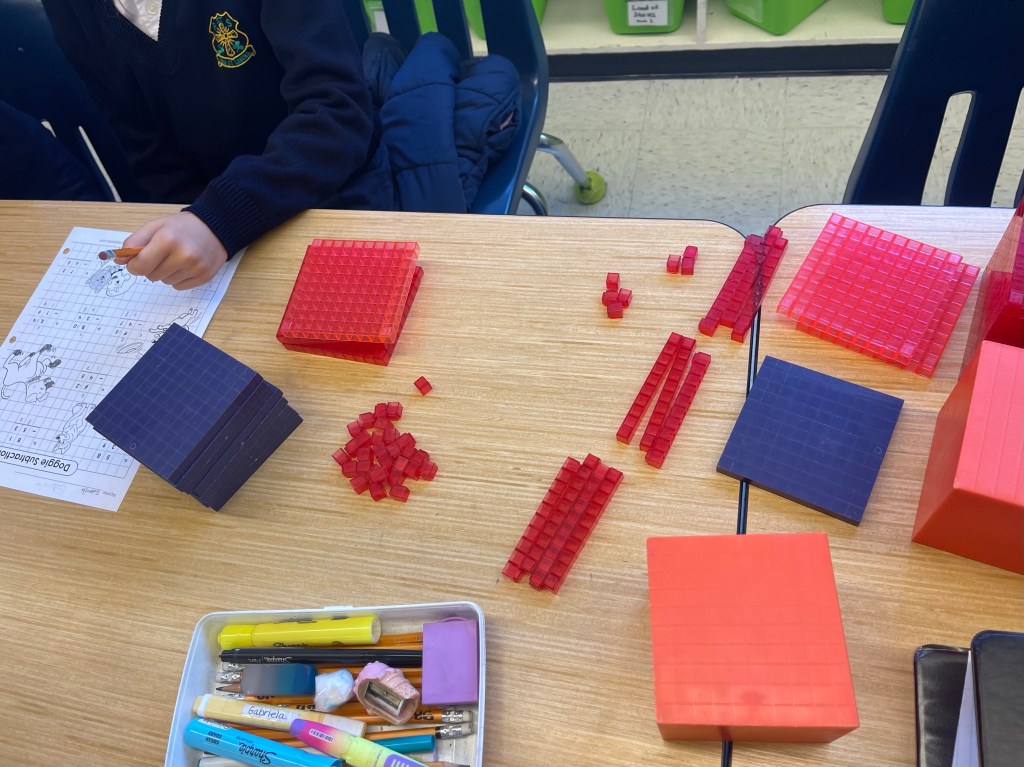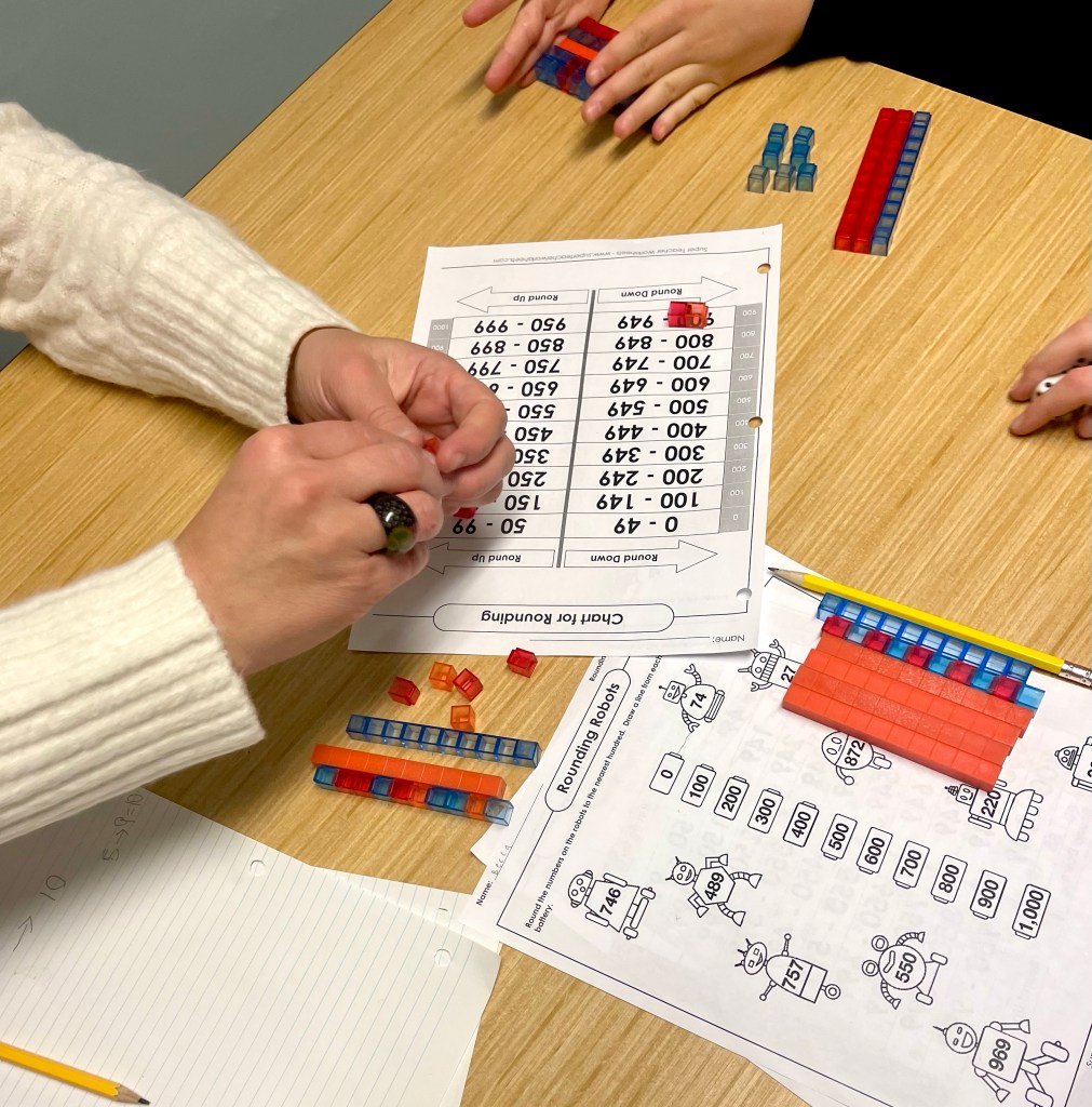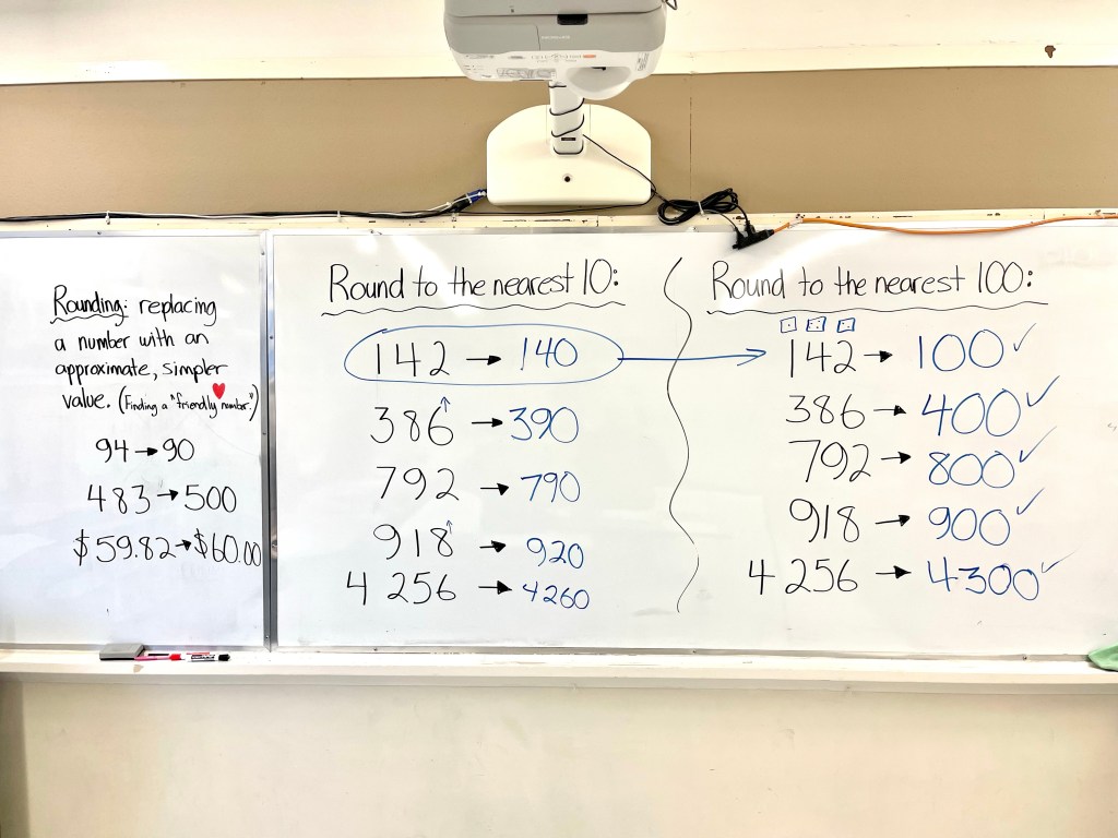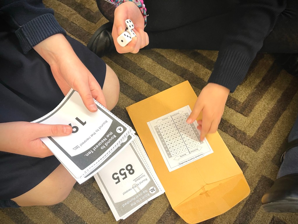 In Math class, we continue to work on rounding to the tens and hundreds place. Students have been using math manipulatives and reinforcing their understanding with flash card practice and dice rounding games.