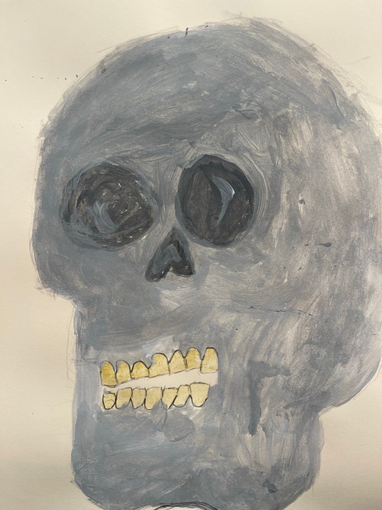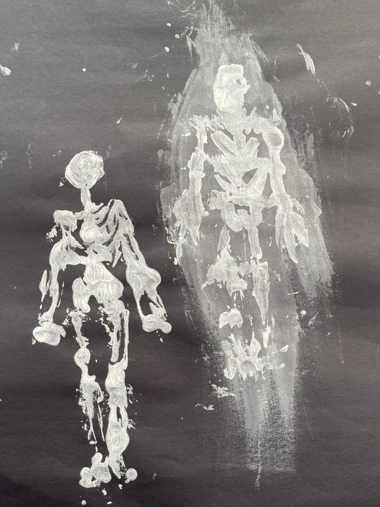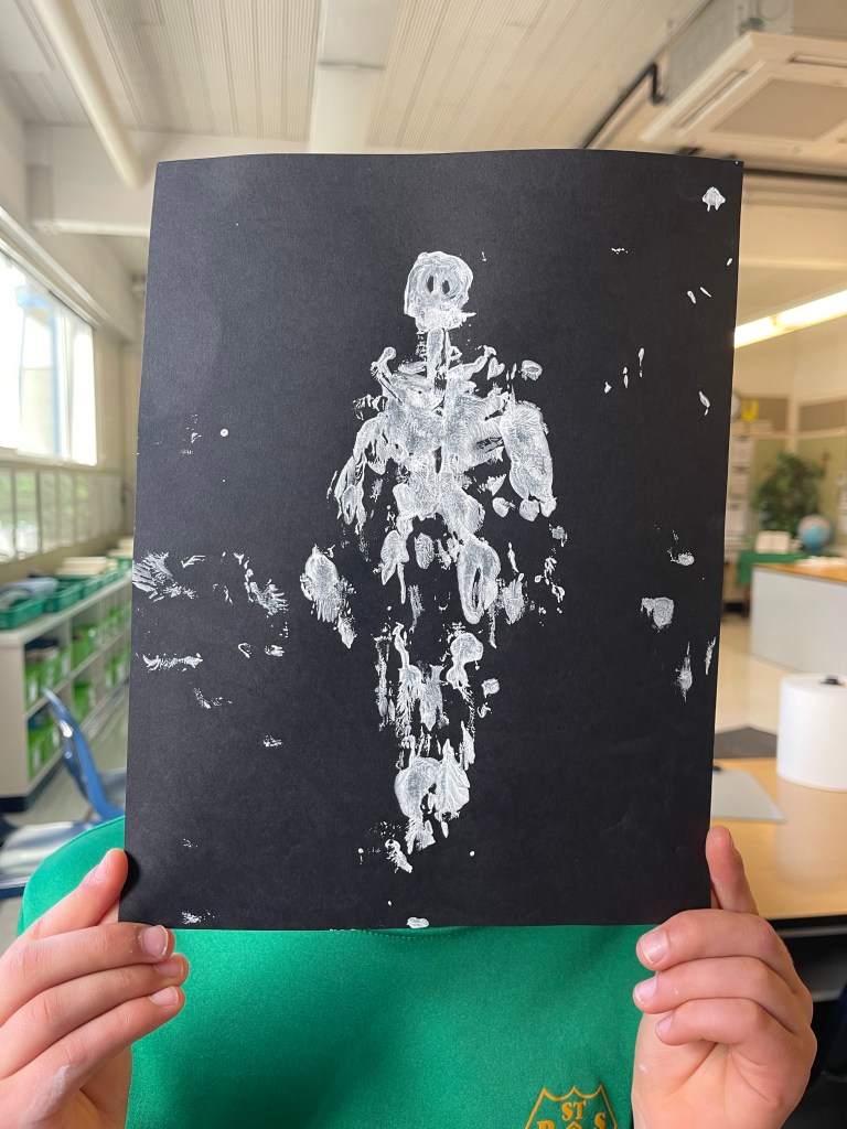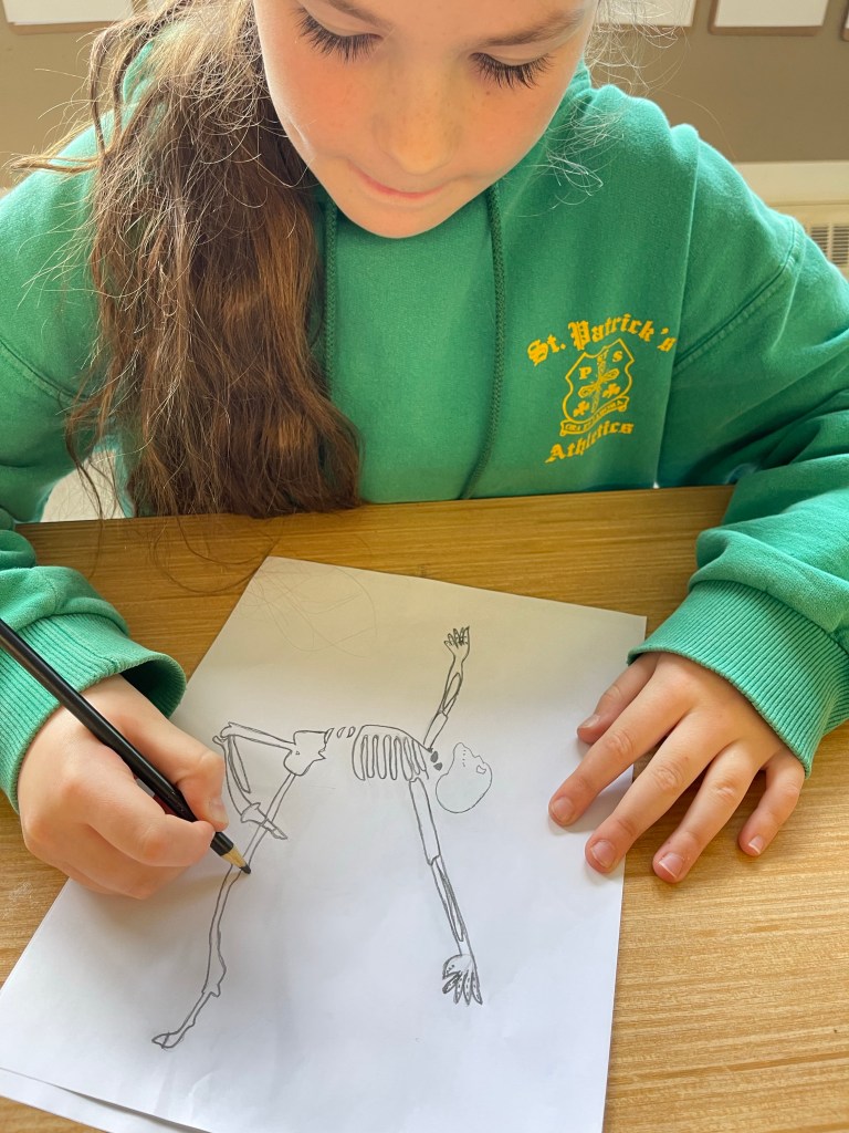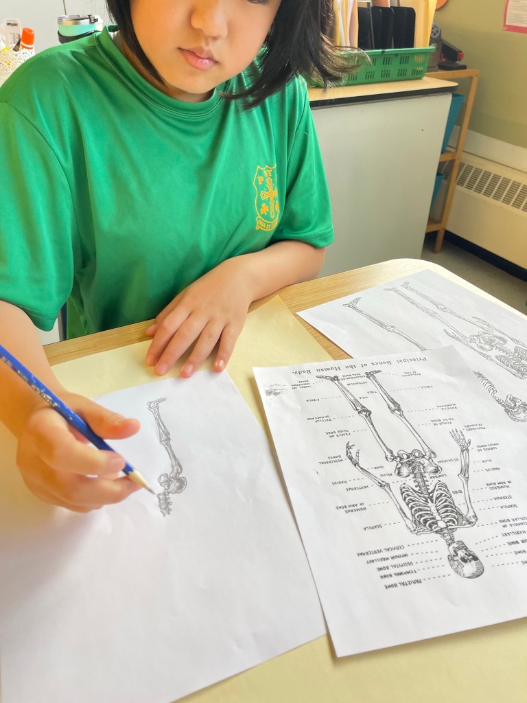 Today we previewed our next Science unit on the skeletal system with a short video and by doing some “Halloween Skeleton Art”; students were invited to do pencil sketches or paint. The goal was to have fun while starting to notice the ways the parts of the human skeleton fit together.