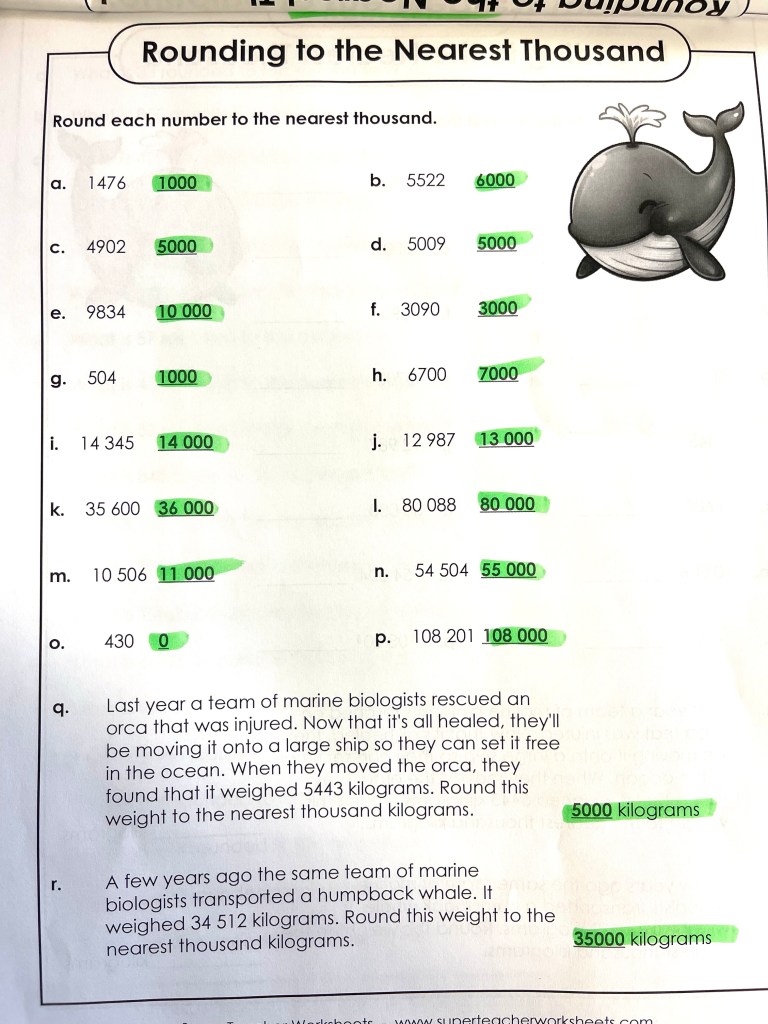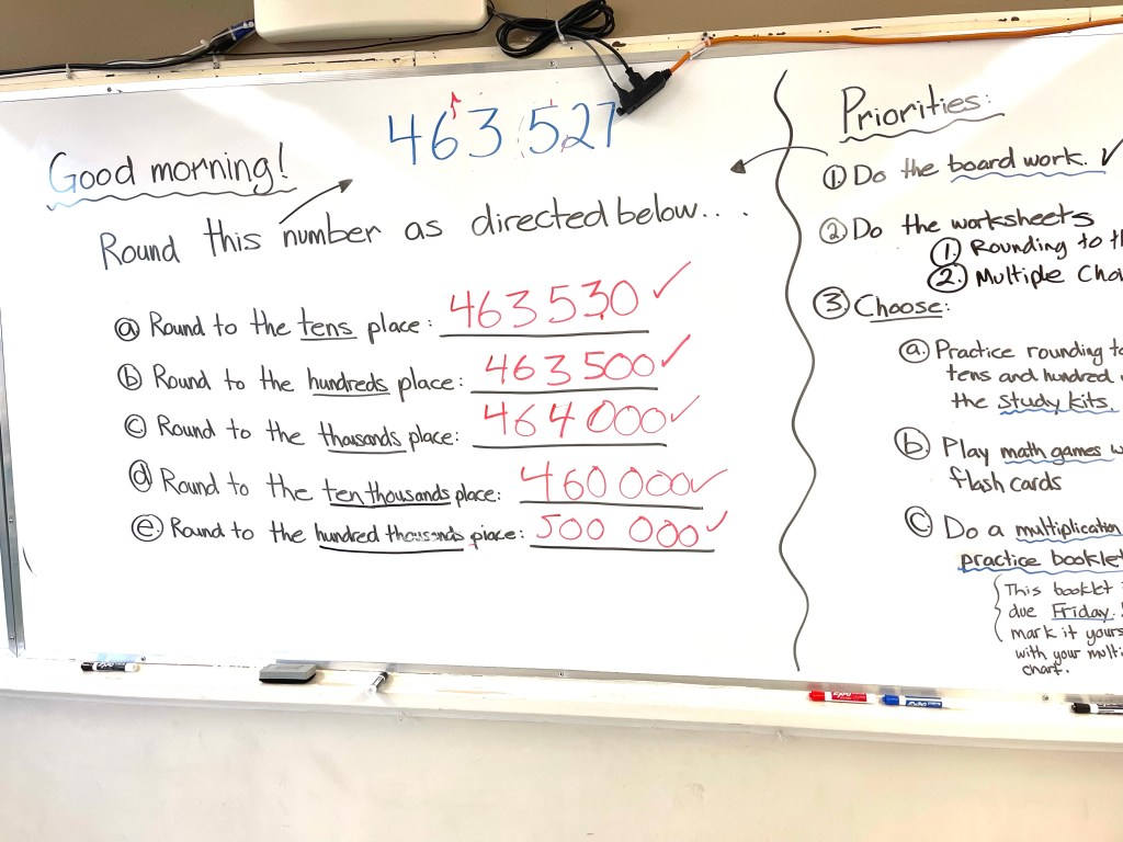 In Math, we are focusing this week on the skill of rounding! Although we started with a review of basic rounding to the tens place, we soared up to rounding into the ten thousands with some bonus questions today.