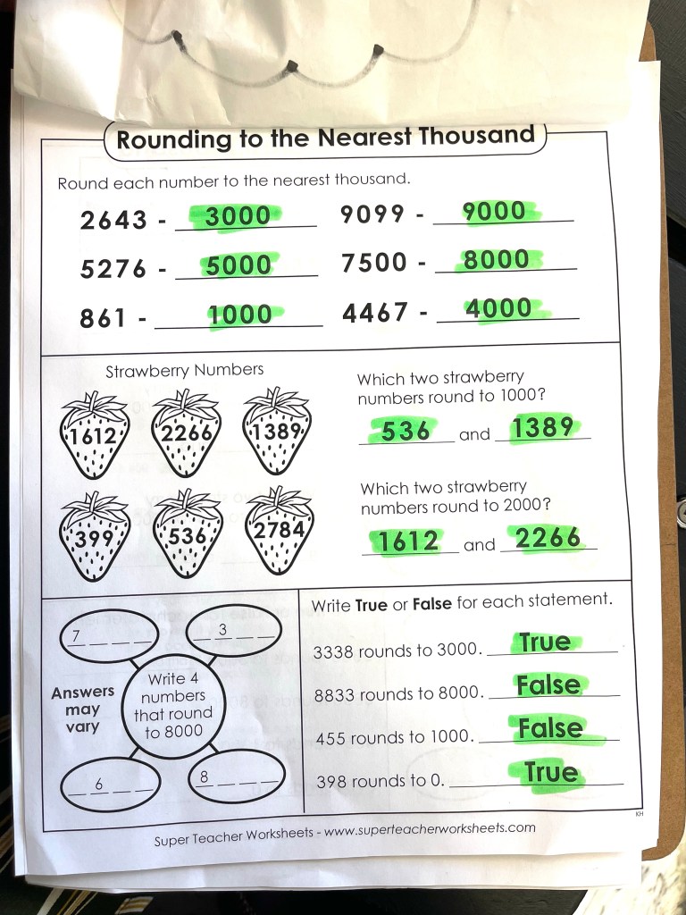 Students who need extra practice were invited to take home the “Rounding Study Kits” this week.