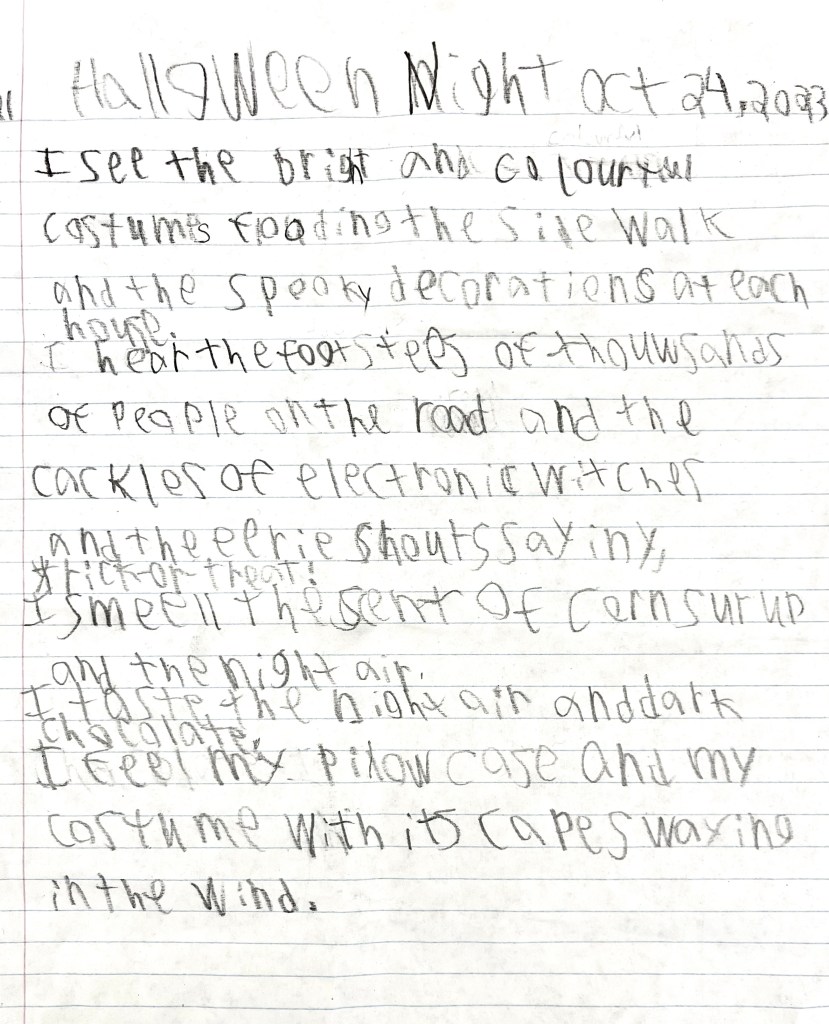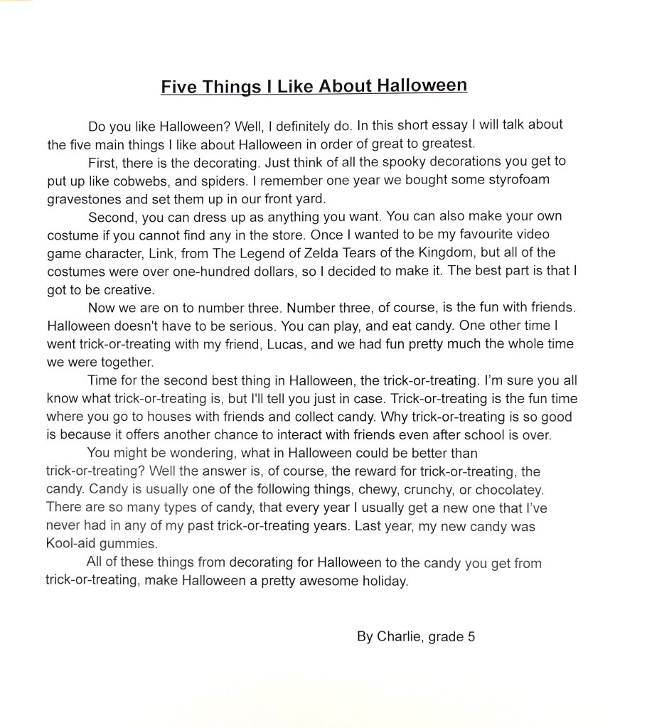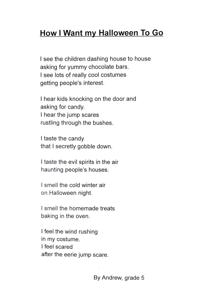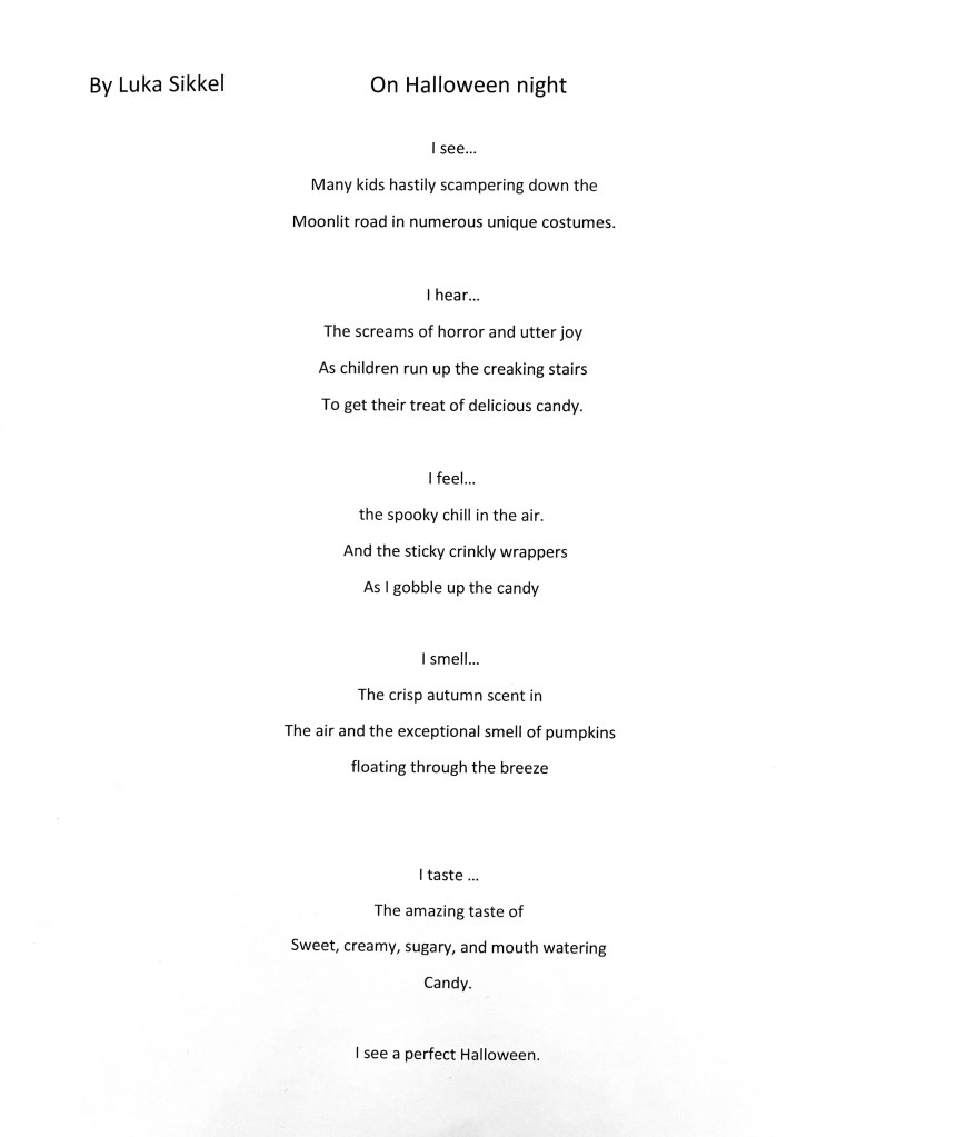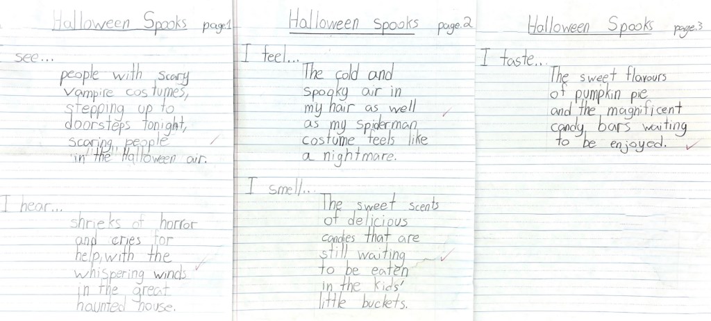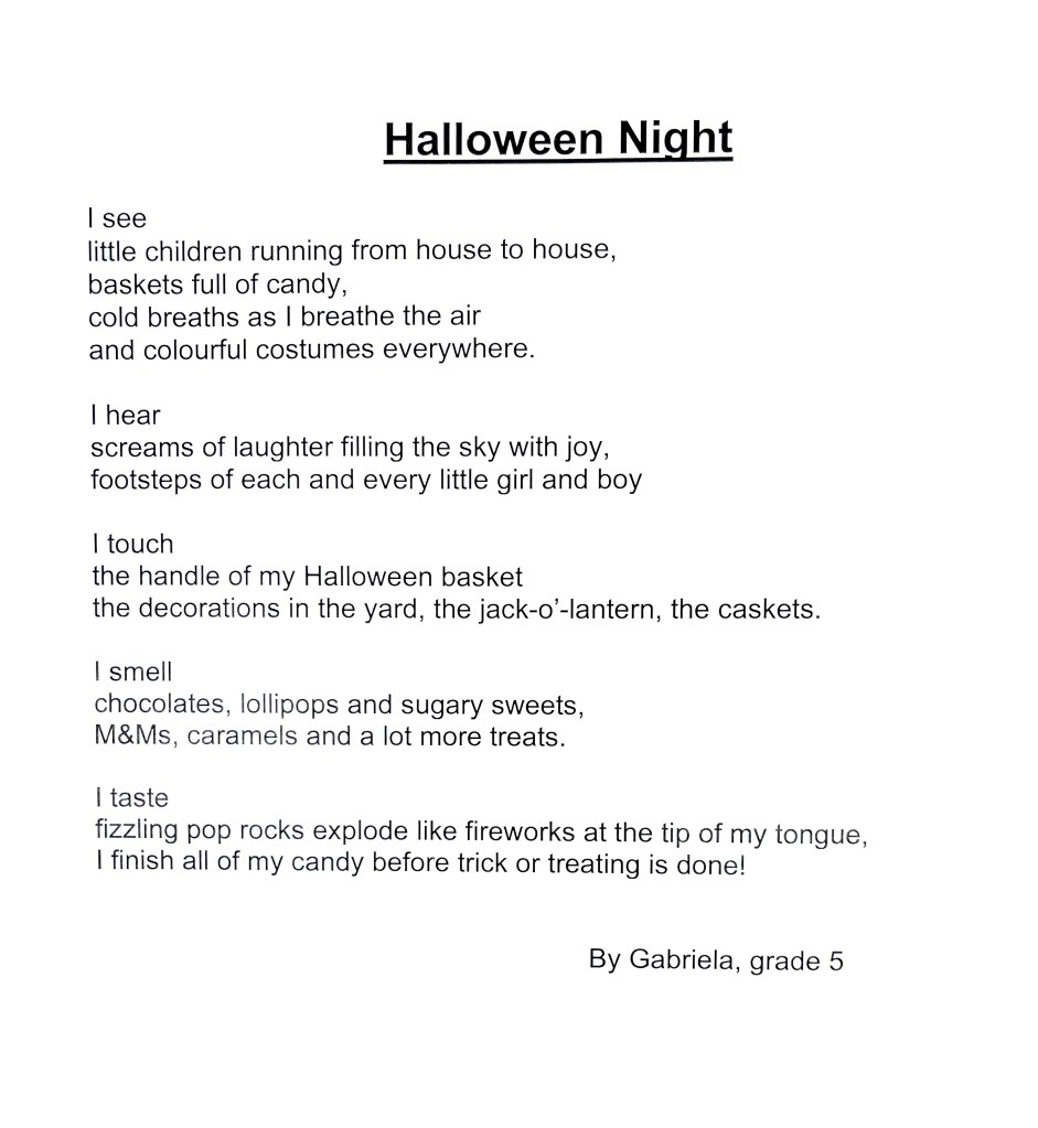 Our grade 5 writers have been hard at work writing, getting feedback, editing and refining their Halloween expository essays and poems. We are delighted to share with you the writing pieces that have now reached the “final draft” phases.