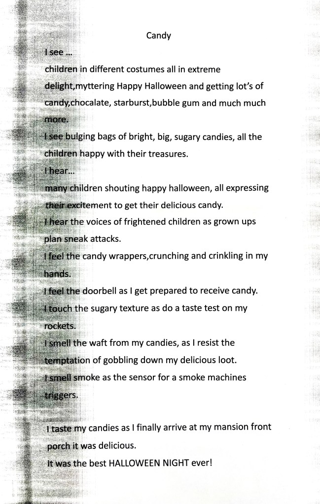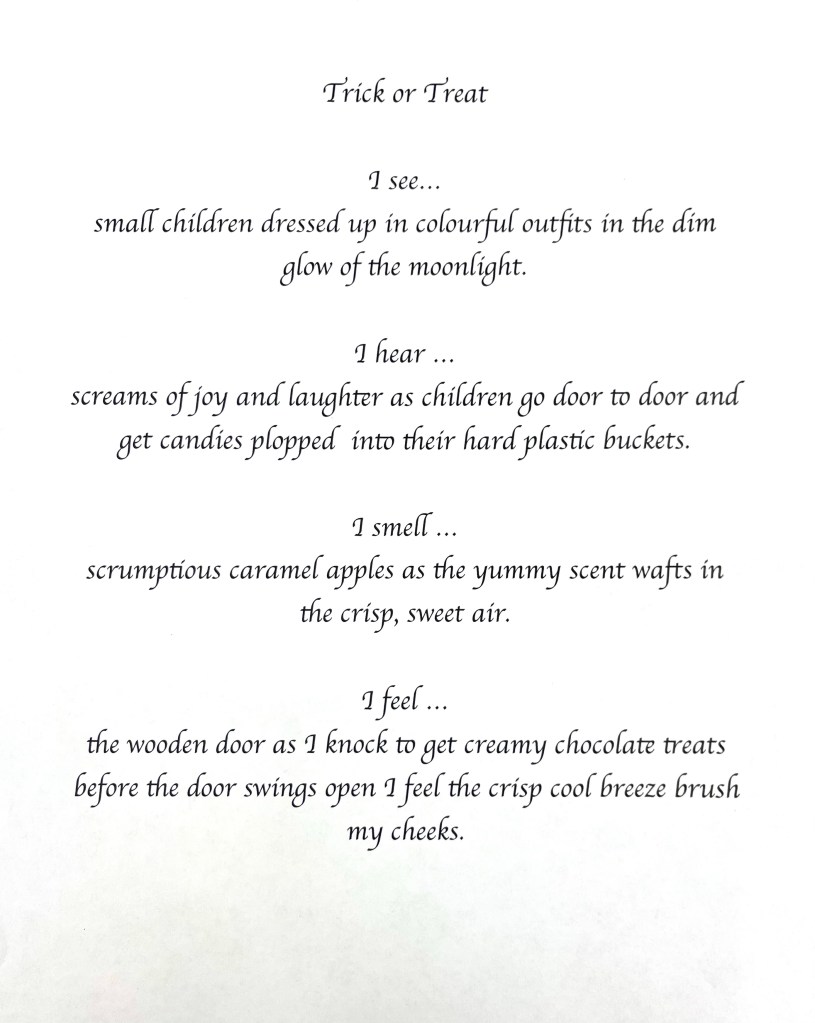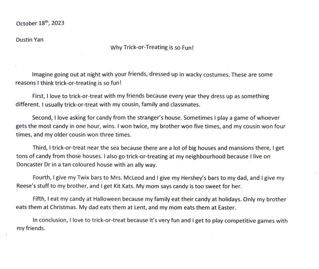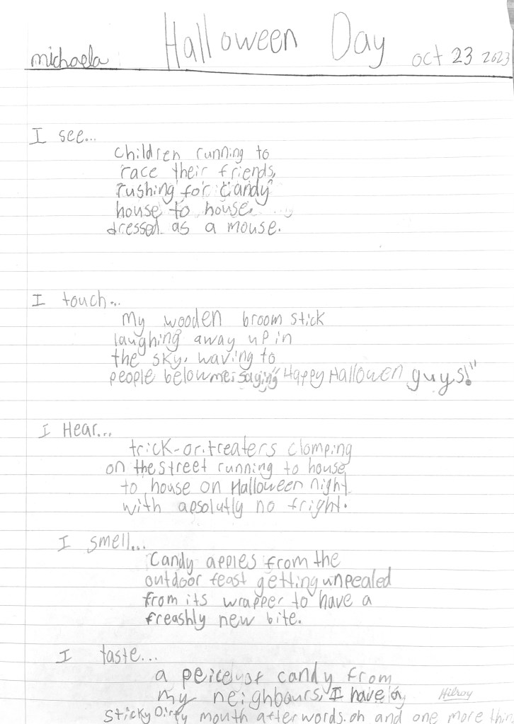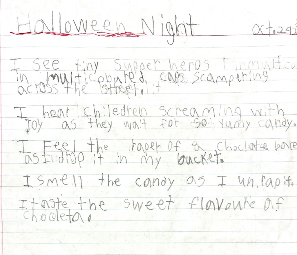 Our grade 5 writers have been hard at work writing, getting feedback, editing and refining their Halloween expository essays and poems. We are delighted to share with you the writing pieces that have now reached the “final draft” phases.