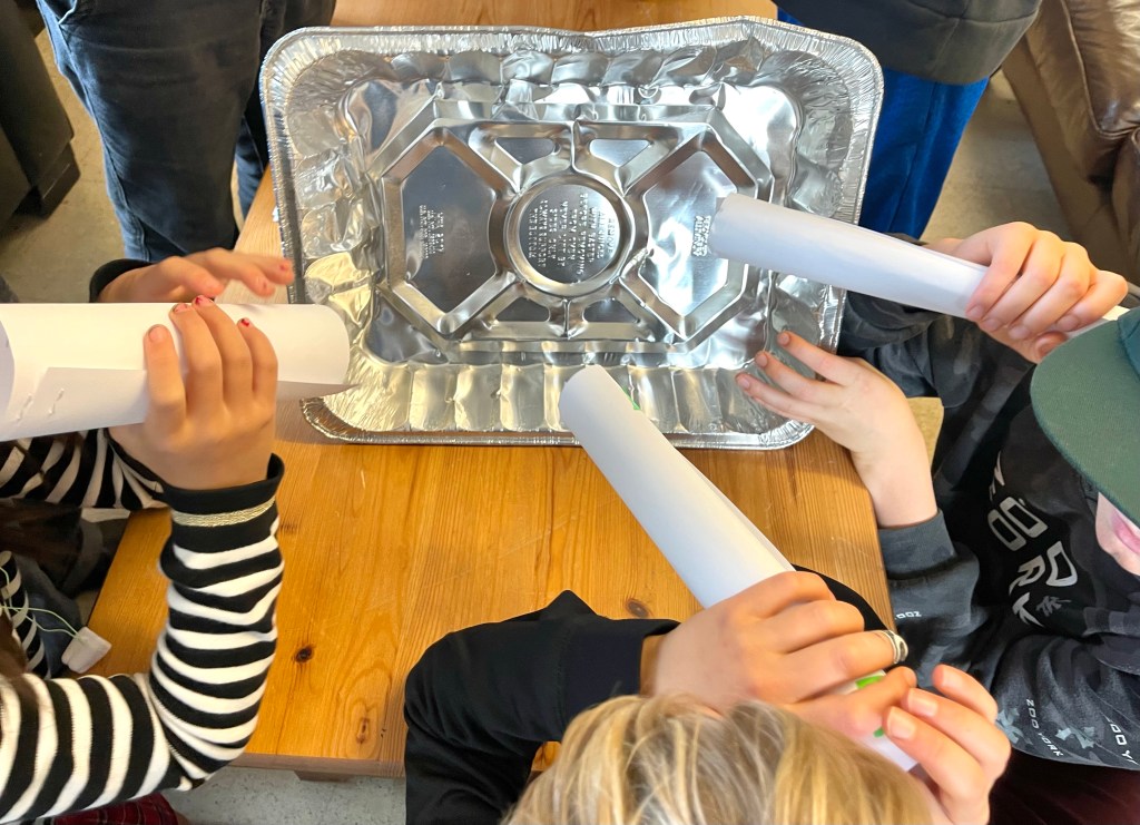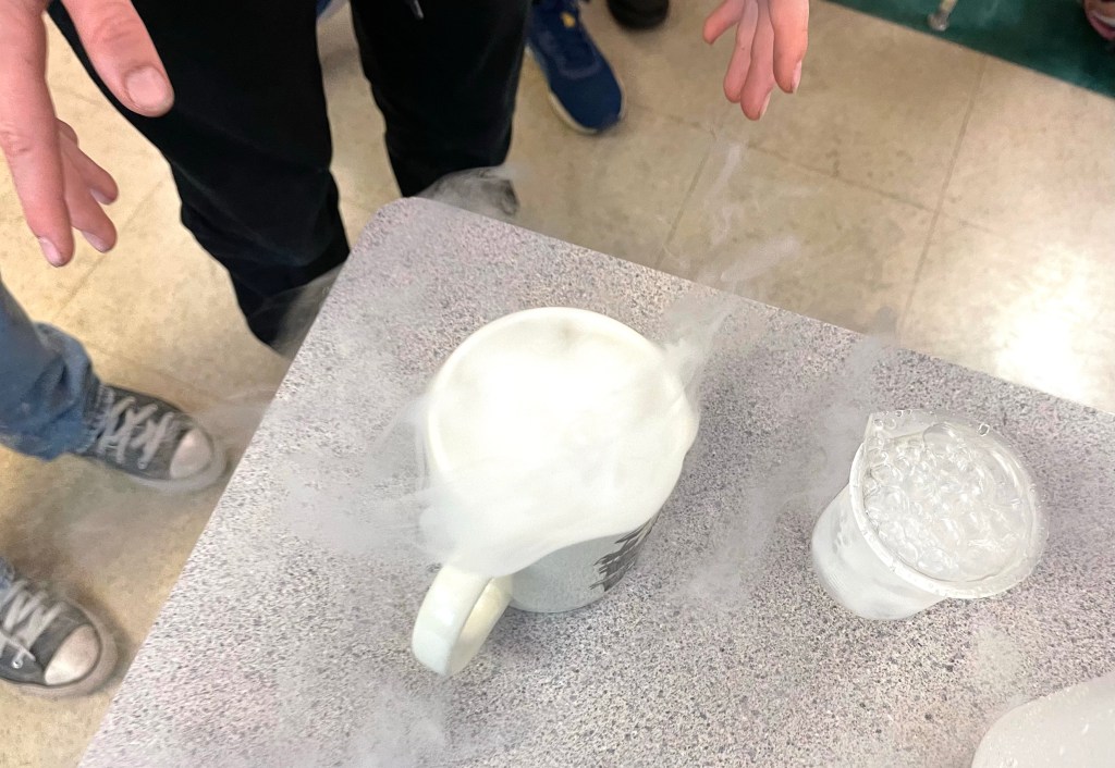 Thanks to the handful of science-loving Div. 4 students who stayed after school to help me melt the rest of the dry ice! It took longer than we predicted—but it was worth the time! My son (above) joined in too, and felt lucky to be doing something so fun surrounded by the cool, big kids.