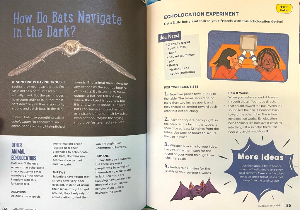 In our Science unit about the senses, we have turned focus to bats and their echolocation ability. Students will have a quiz on this tomorrow, and we did a review in class today in preparation.