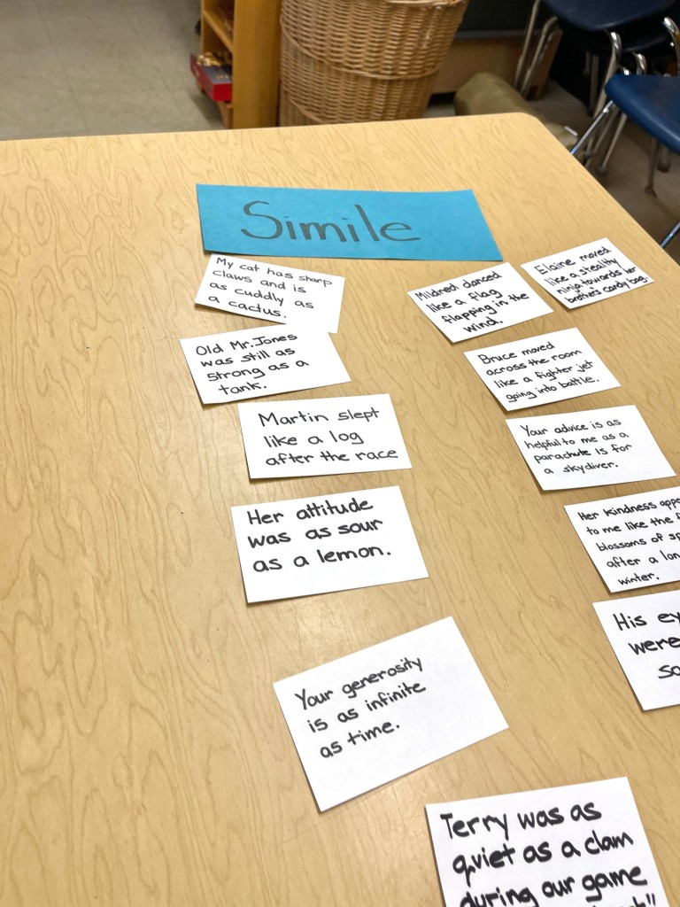 We also continued our rich learning in the area of figurative language today. We reviewed some more examples of simile and metaphor, and then students gave themselves a self-quiz to check their own understanding.