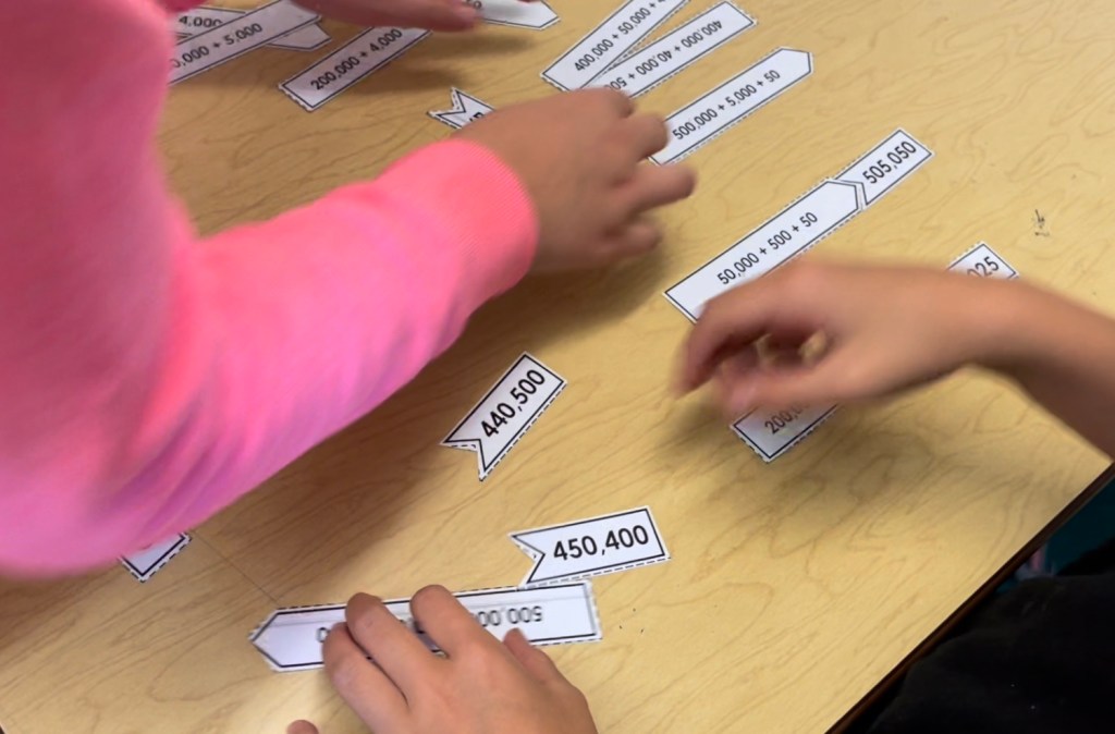 In math, we continue to explore place value. The students are working with numbers in standard form, expanded form and word form—grade 4s work up to the ten thousands and grade 5s work up to the hundred thousands. We used the greater than and less than symbols as well to compare and order numbers. We have been doing team challenges and puzzles to reinforce learning and have fun with it.